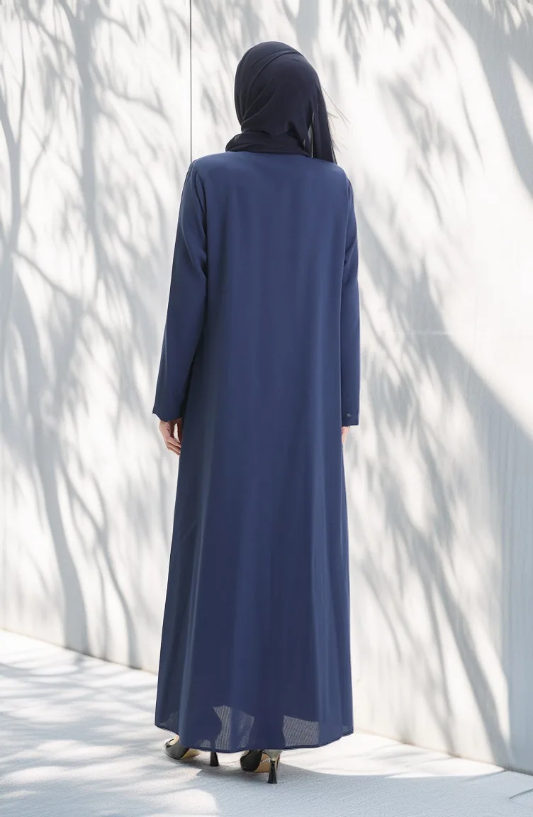 Abaya Met Metalen Kralen En Rits In Grote Maten 6148-04 Indigo 6148-04