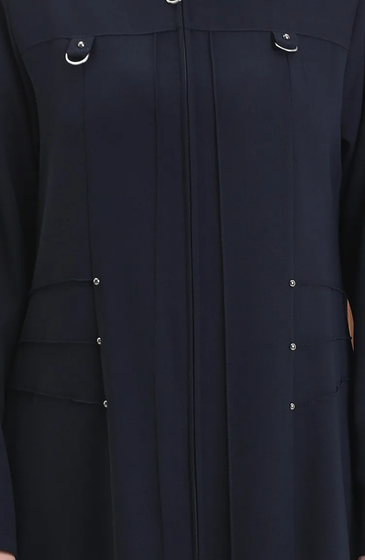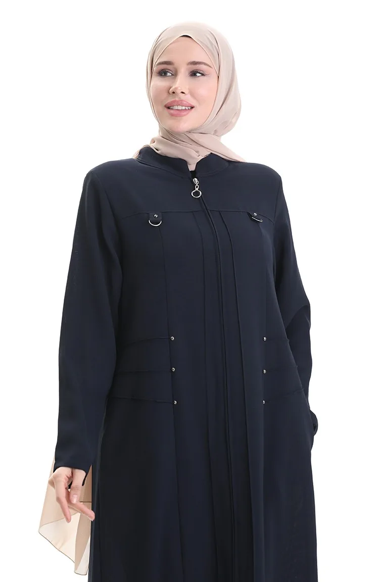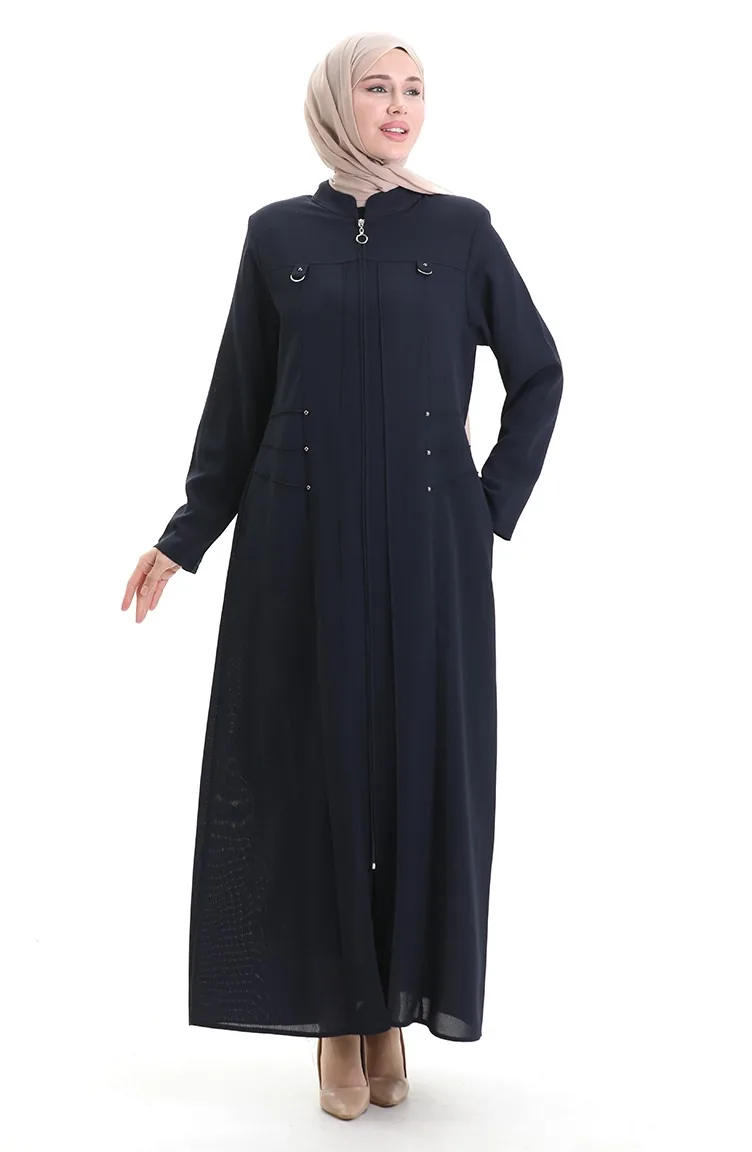 Plus Size Abaya Met Metalen Kralen En Rits 6148-02 Marineblauw 6148-02