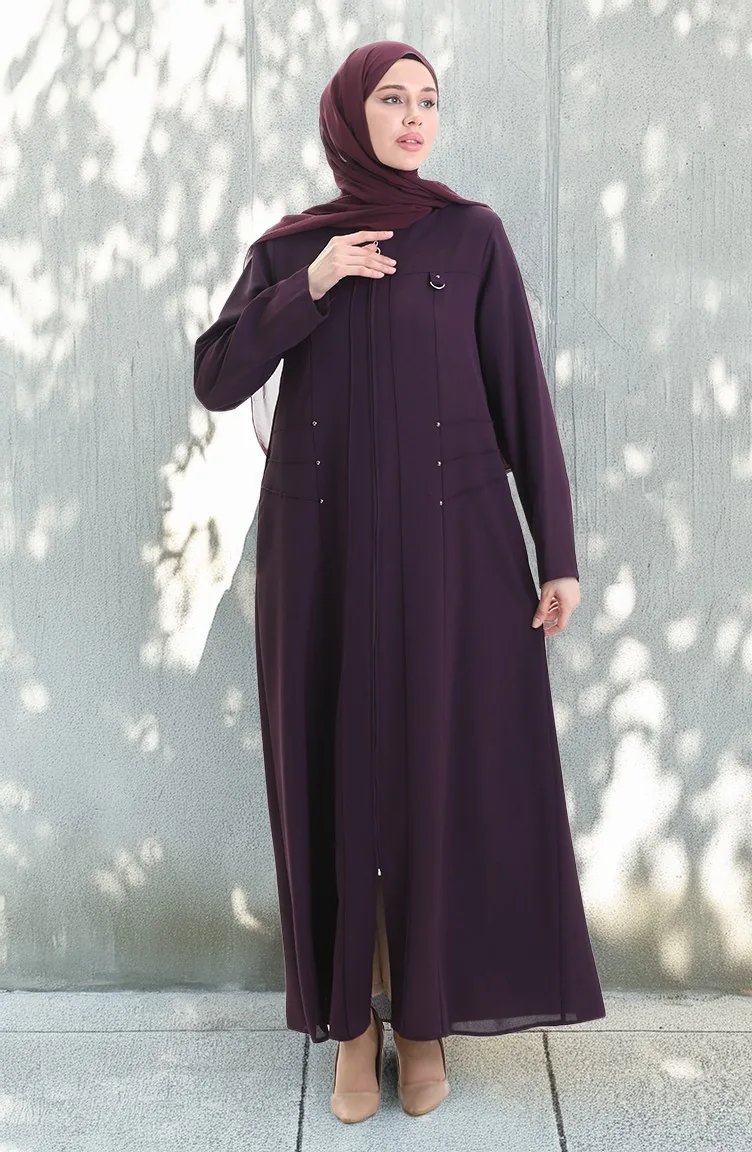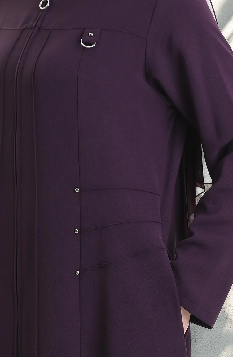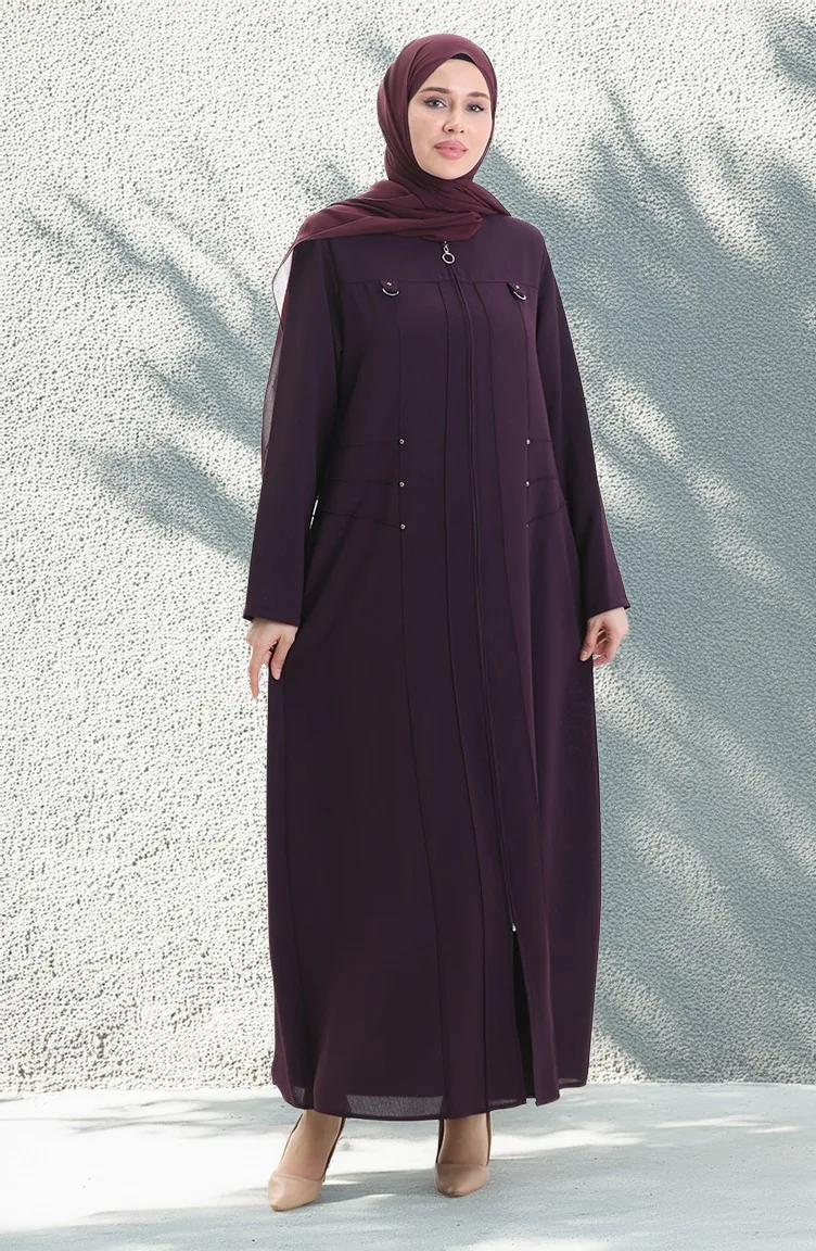 Plus Size Abaya Met Metalen Kralen En Rits 6148-03 Pruim 6148-03