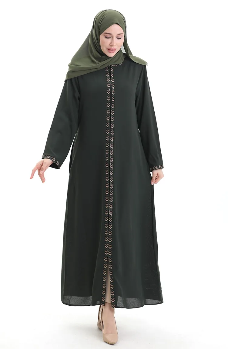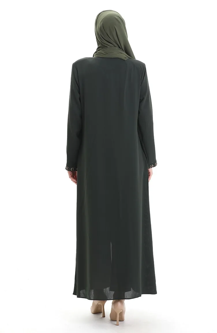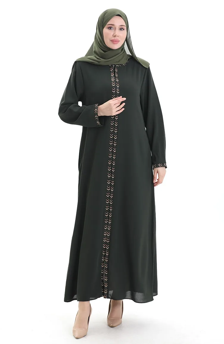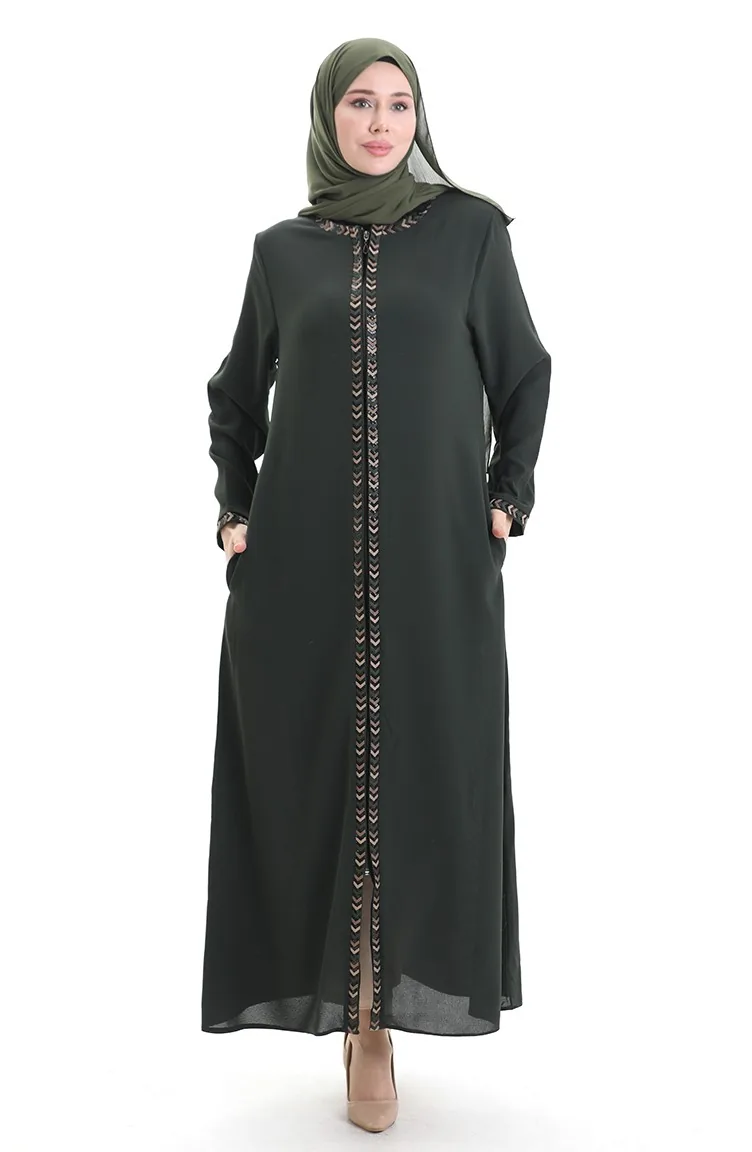 Plus Size Abaya Met Rits En Honingraatmotief 6183-01 Khaki 6183-01