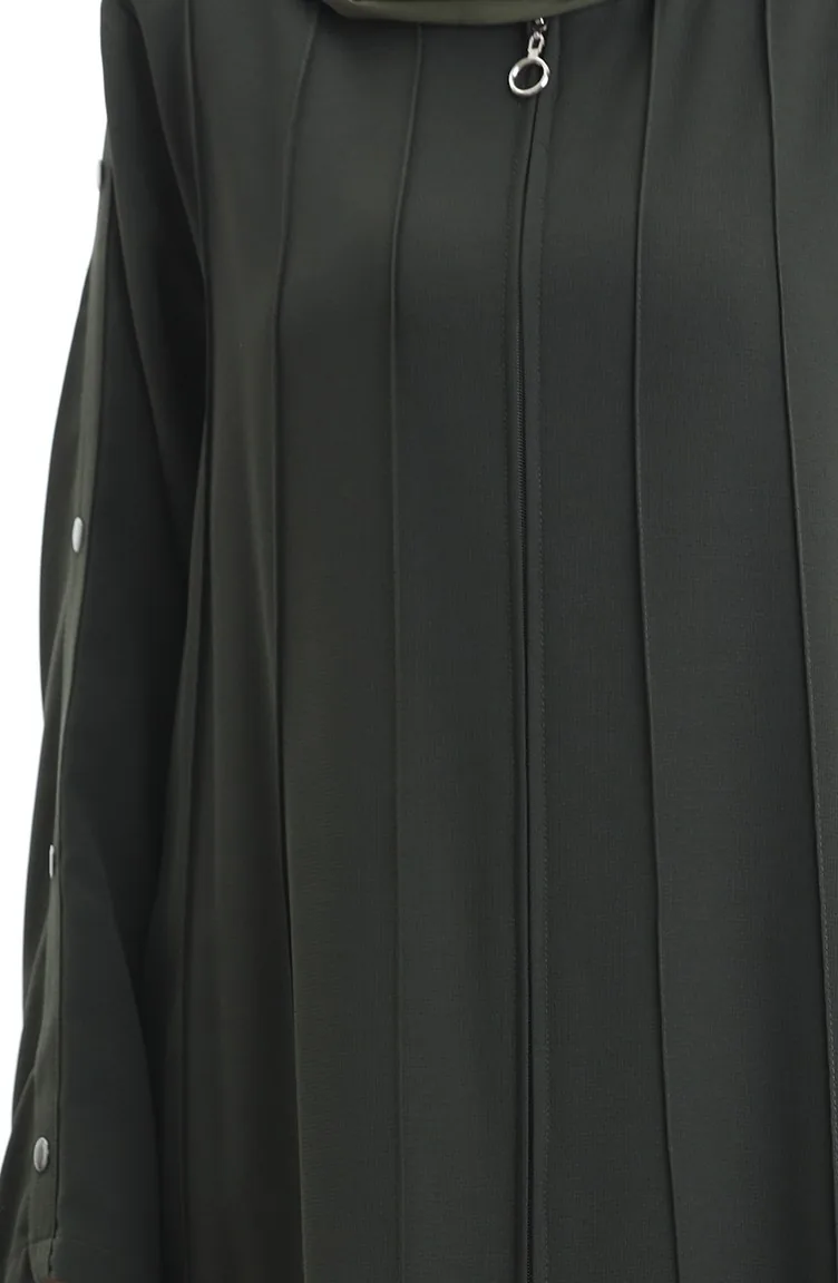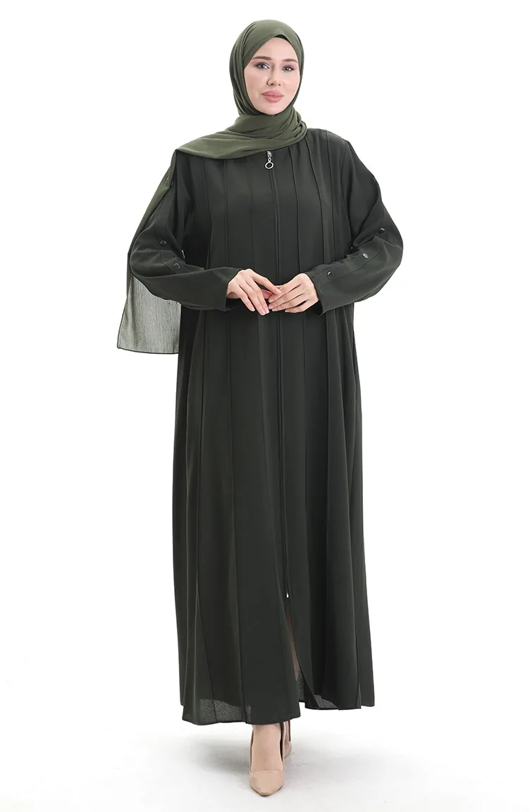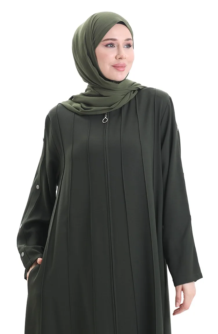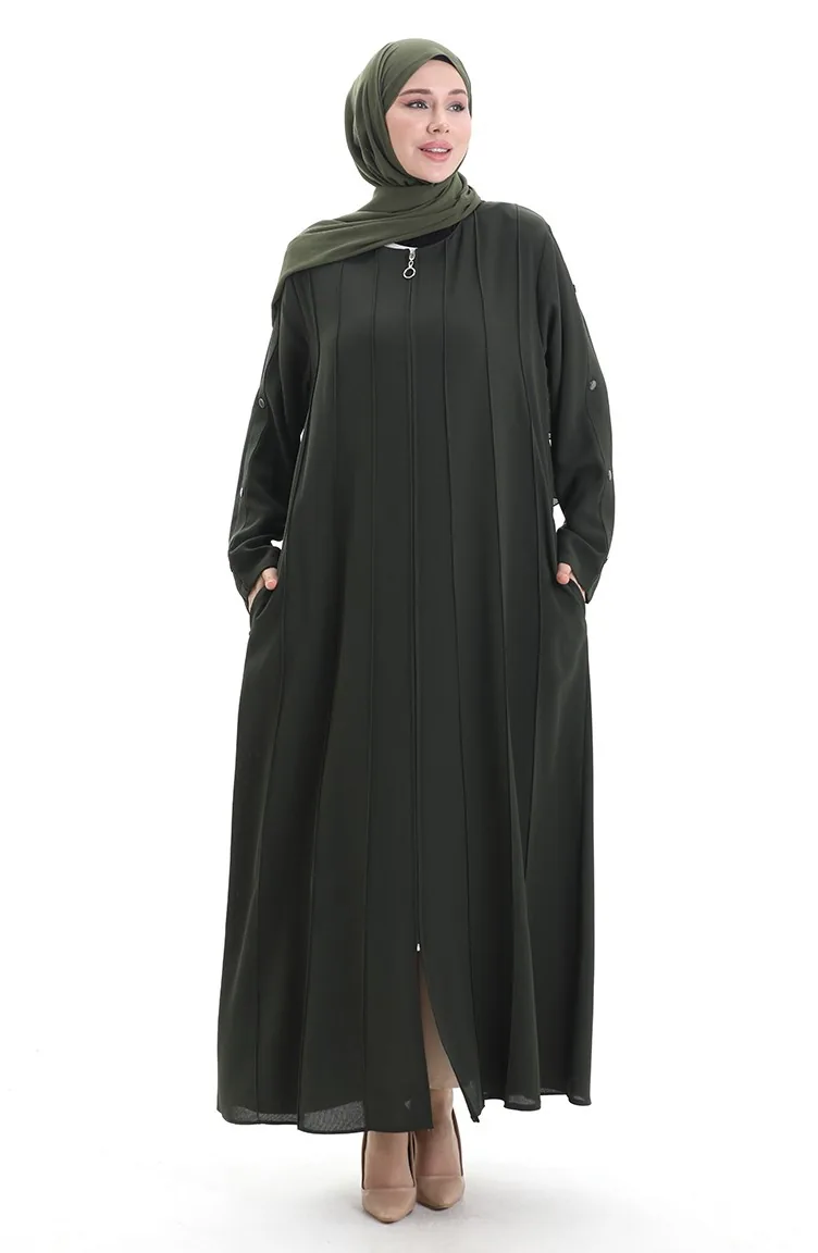 Plus Size Abaya Met Rits En Naaiwerk 6177-08 Khaki 6177-08