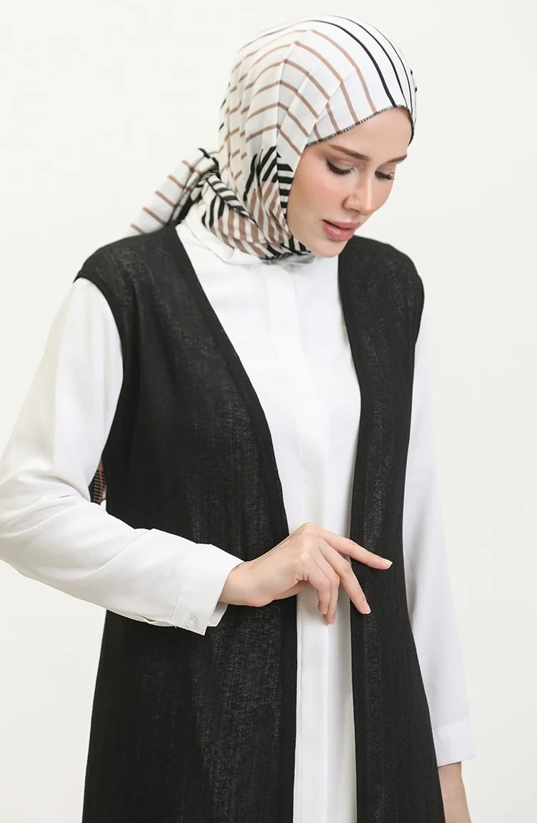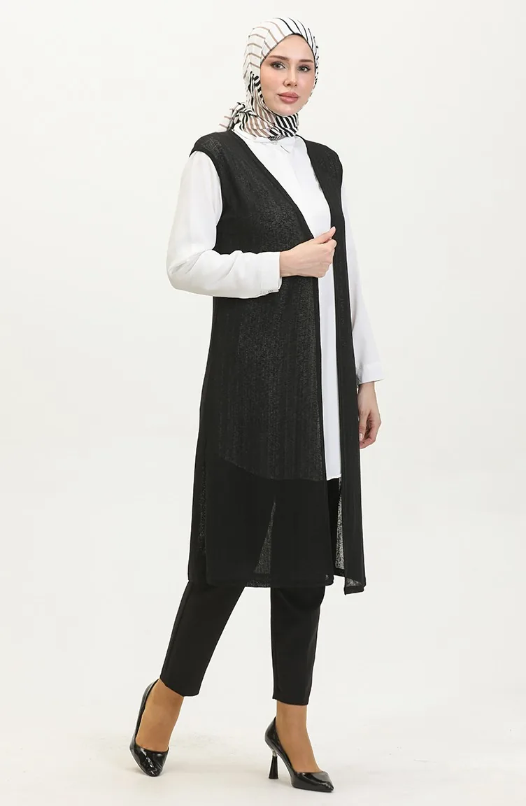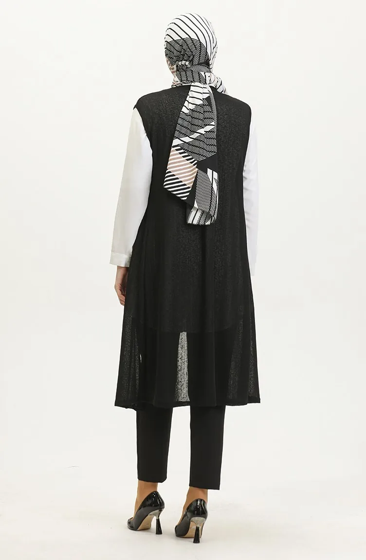 Plus Size Flowy Lang Seizoensvest 8739-04 Zwart 8739-04