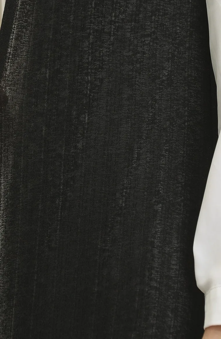 Black color is used. Knitted fabric is used. It has a plain appearance. Plus size option available.