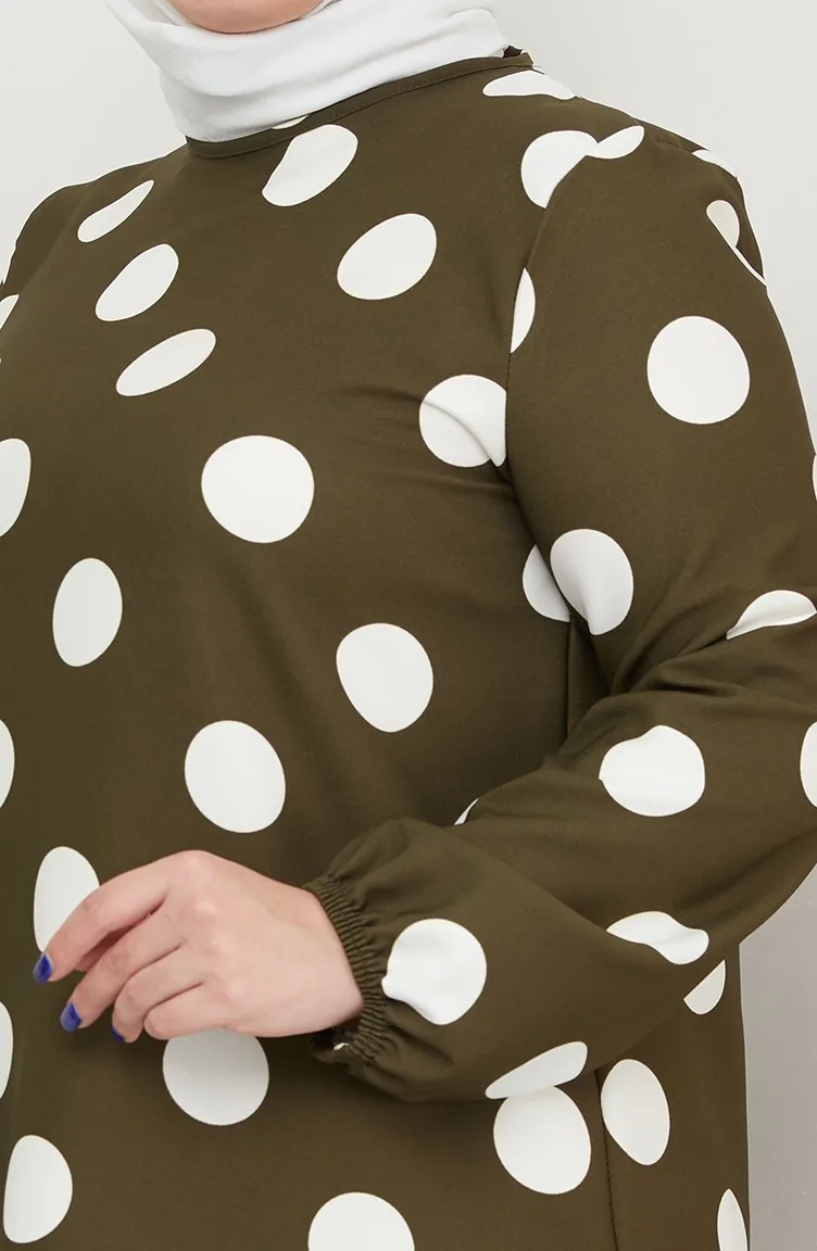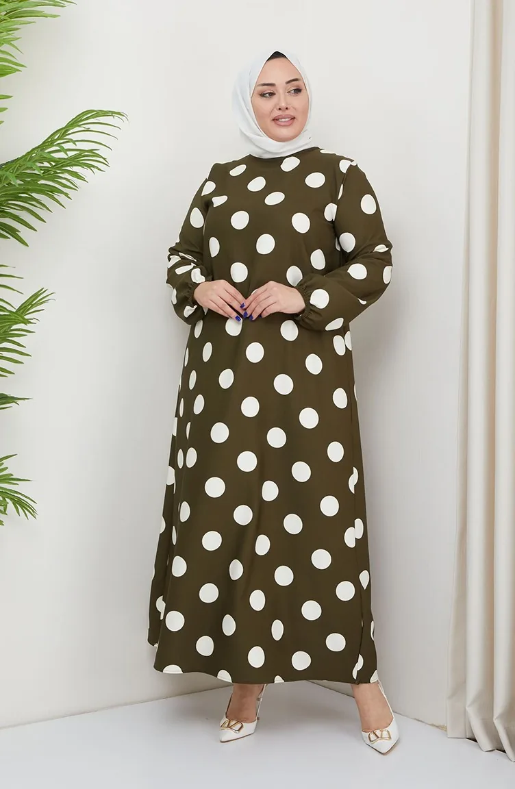 Grote Maat Jurk Met Stippenpatroon 0708-01 Kaki 0708-01