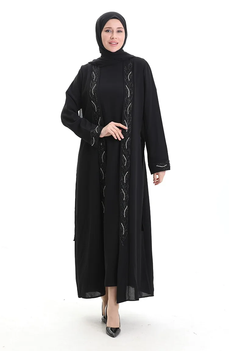 Black color is used. It has a plain appearance. The stones used to give a different atmosphere. The Zero collar is preferred for all types of clothing. Suitable for 4 seasons. Plus size option available.
