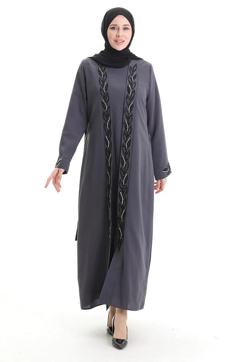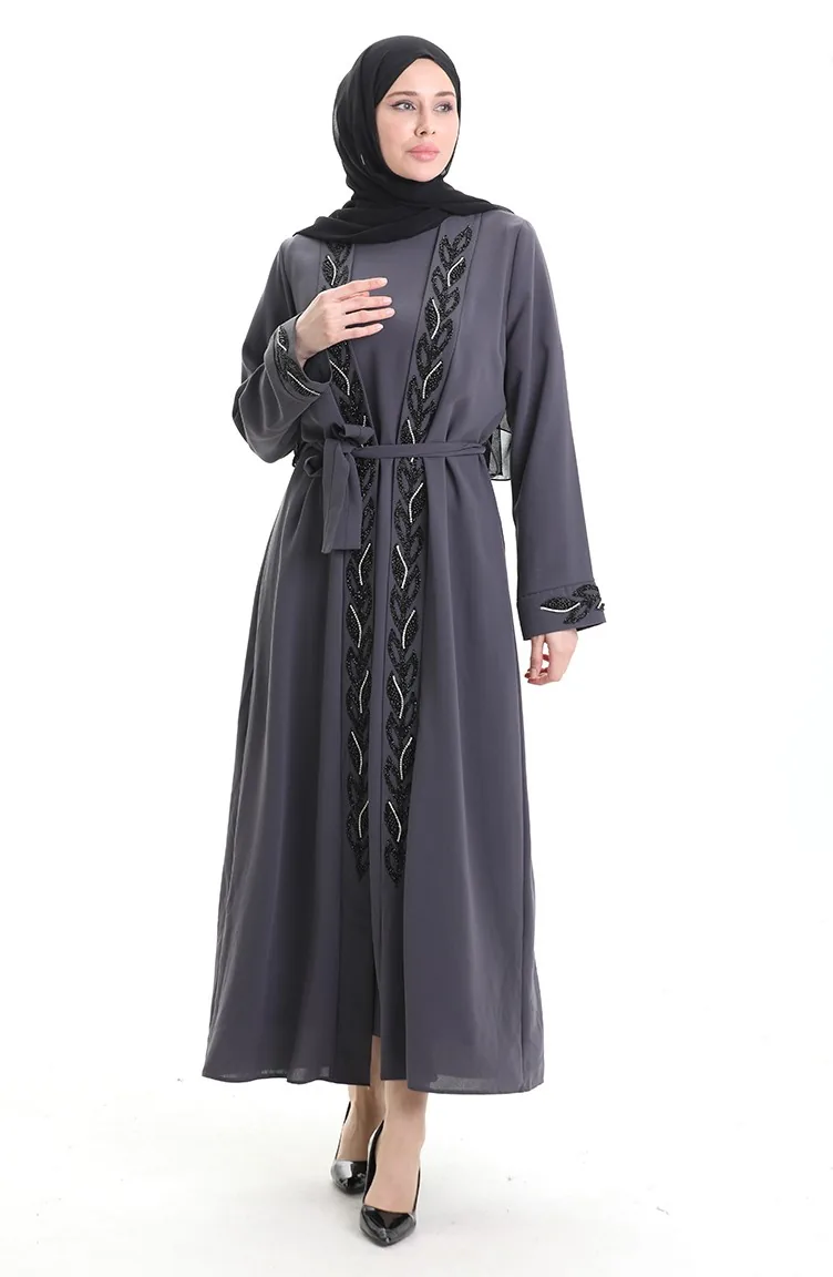 Gray color is used. It has a plain appearance. The stones used to give a different atmosphere. The Zero collar is preferred for all types of clothing. Suitable for 4 seasons. Plus size option available.