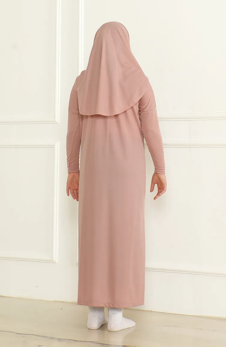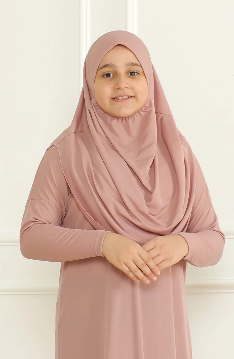 Praktische Kindergebedsjurk Uit één Stuk Met Hoofddoek 1985-06 Poeder 1985-06