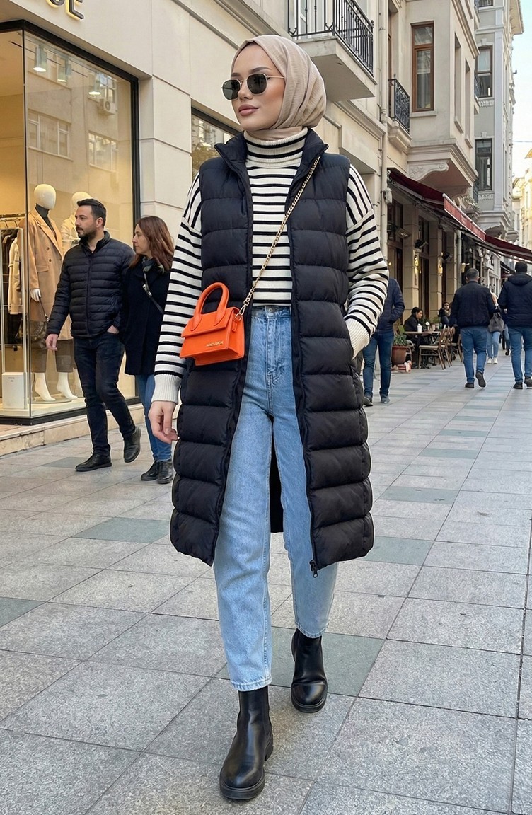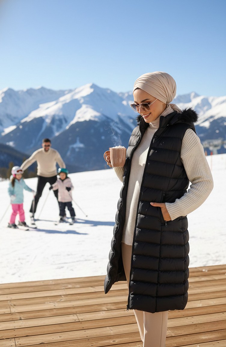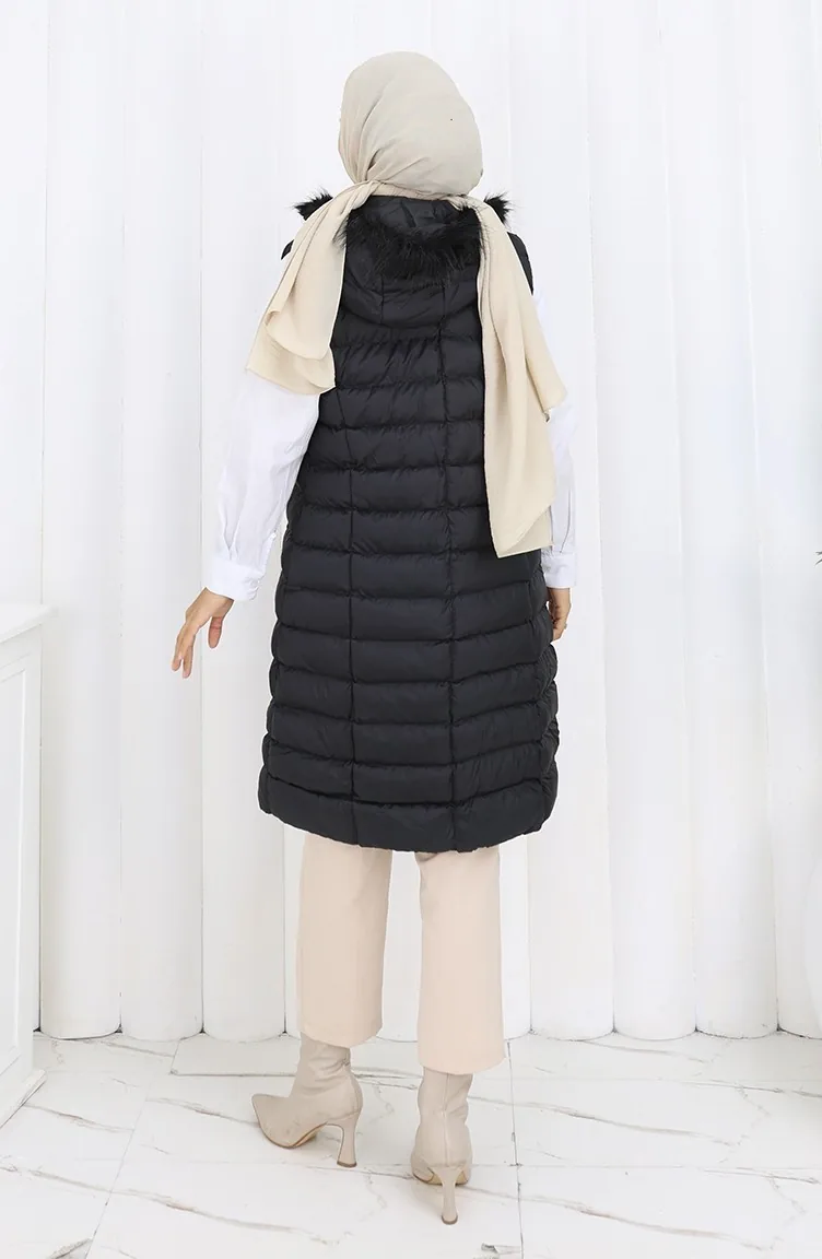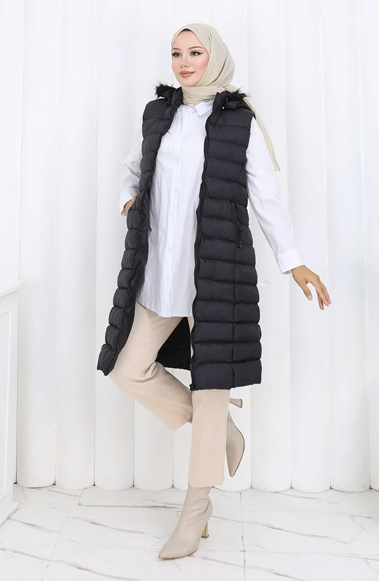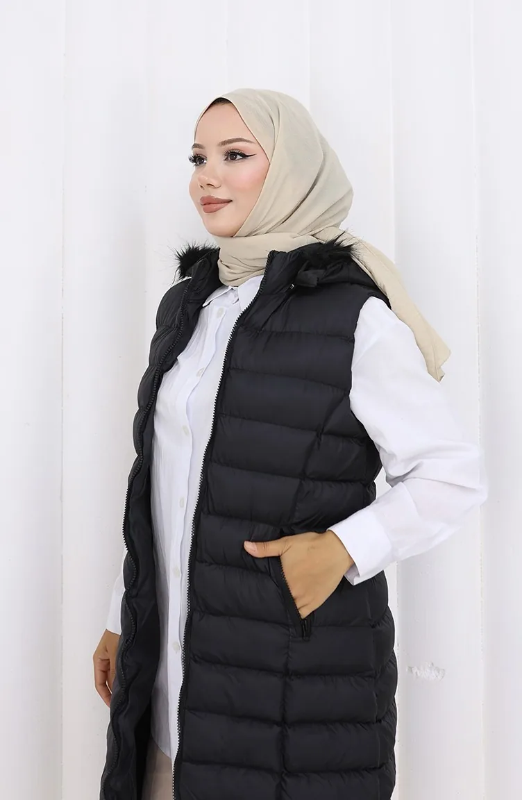 Gewatteerd Vest Met Capuchon En Rits 0169A-02 Zwart 0169A-02