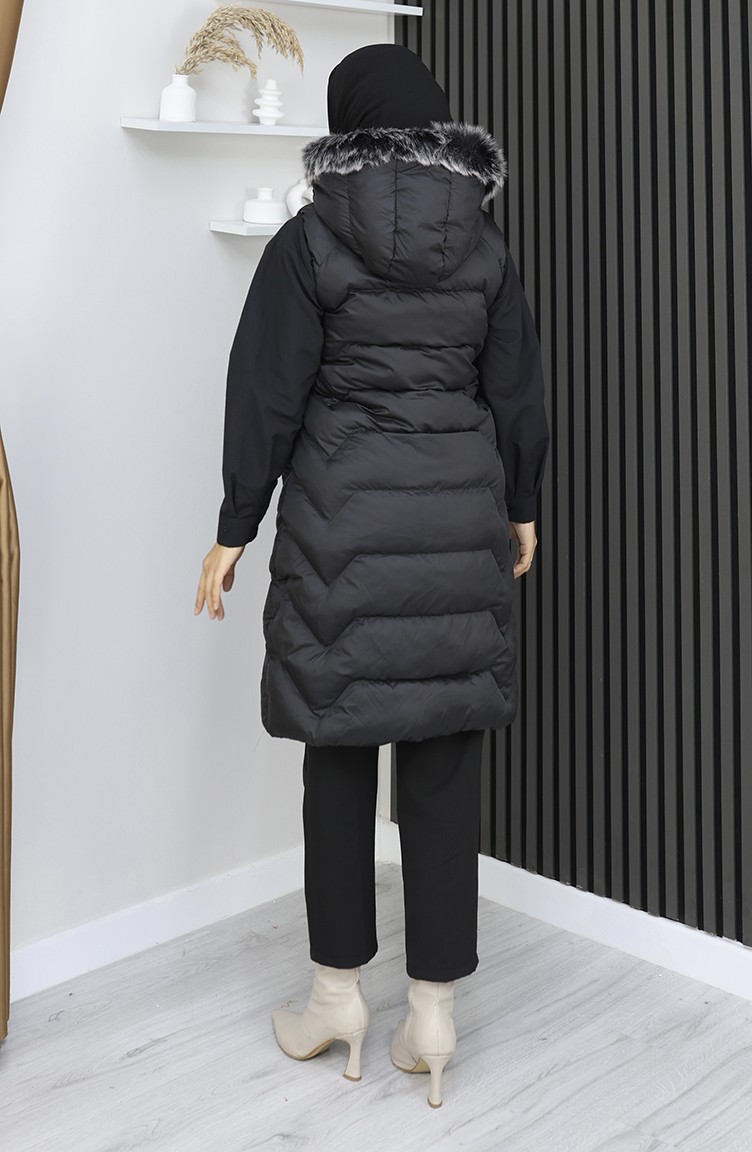 Gewatteerd Vest Met Capuchon En Rits 0180A-01 Zwart 0180-01