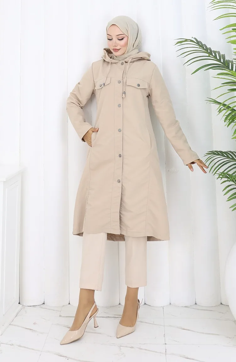 Bondit Stoffen Trenchcoat Met Capuchon 0185-04 Beige 0185-04
