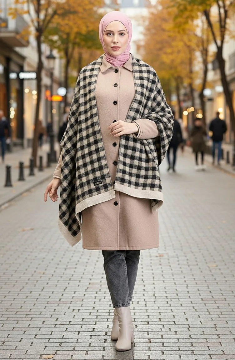 Schoudersjaal 1072-01 Zwart Khaki 1072-01