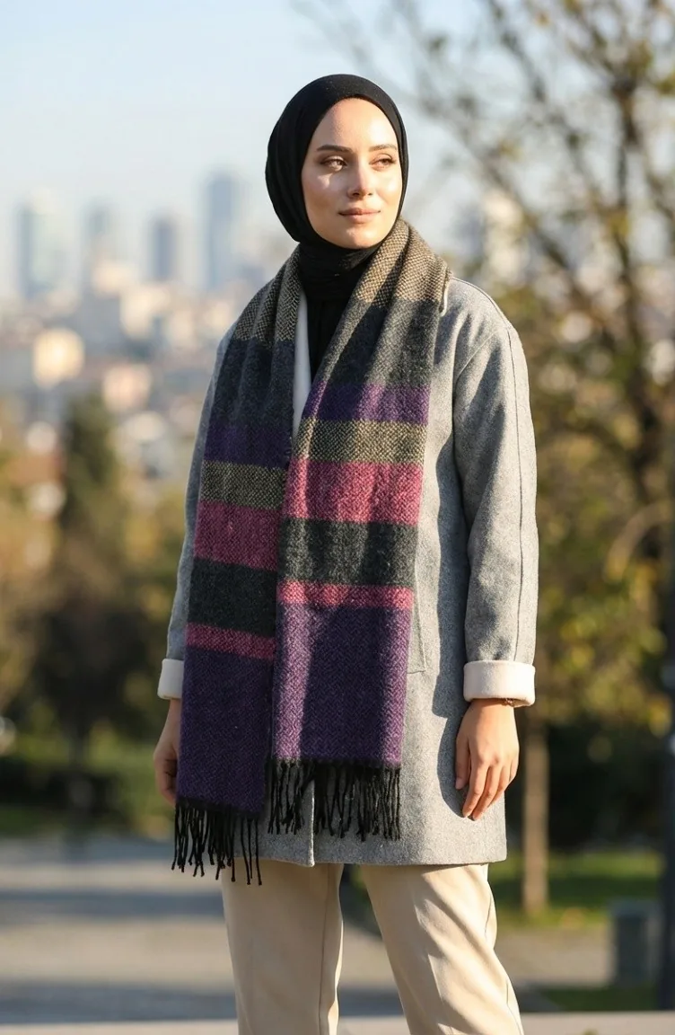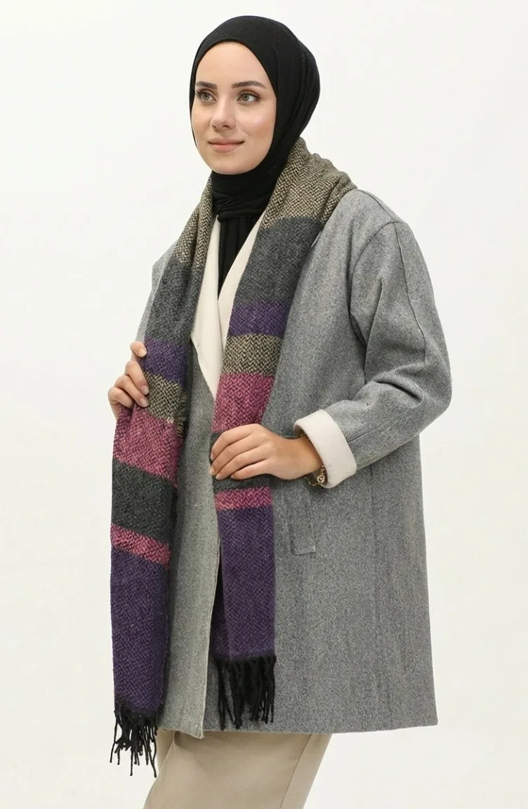 Schoudersjaal Met Visgraatmotief 2035-05 Paars 2035-05