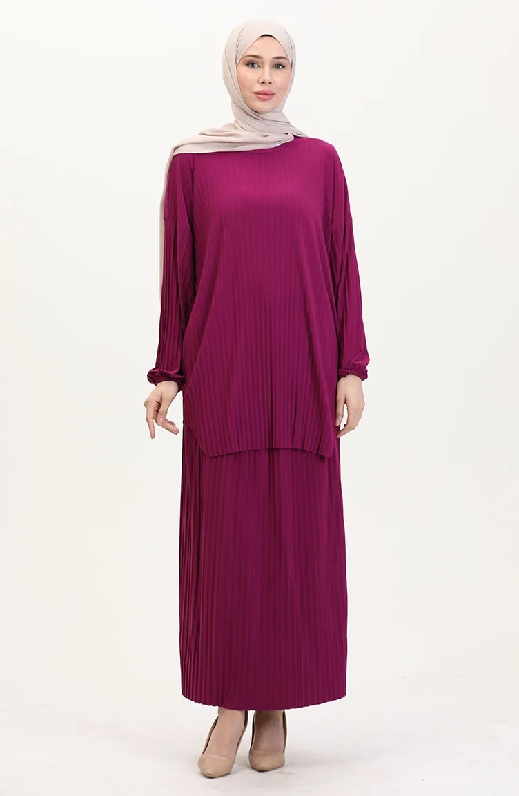 Geplooide Tuniekrok Tweedelig Set 0015-05 Pruim 0015-05