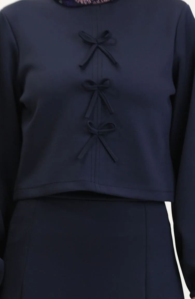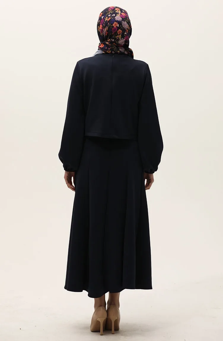 Scuba Fabric Blouse Rok Tweedelig Set 0021-01 Marineblauw 0021-01
