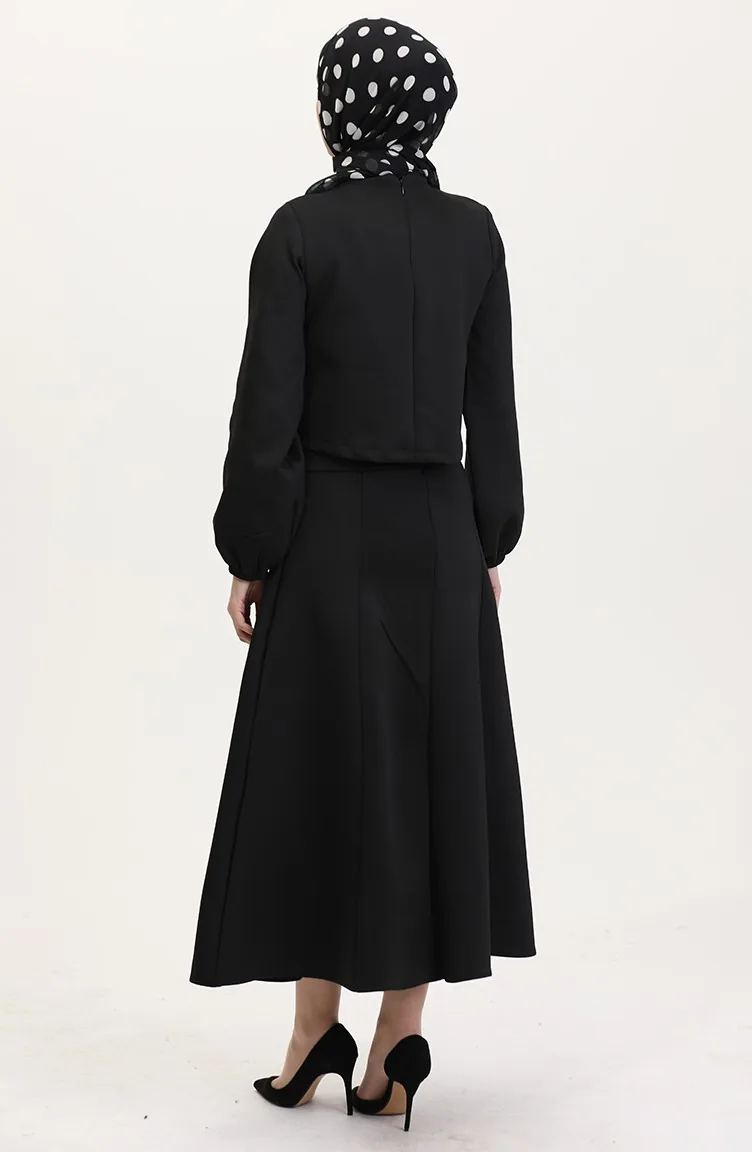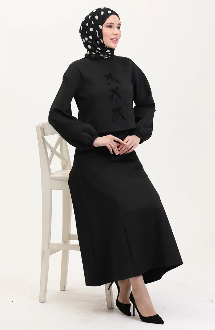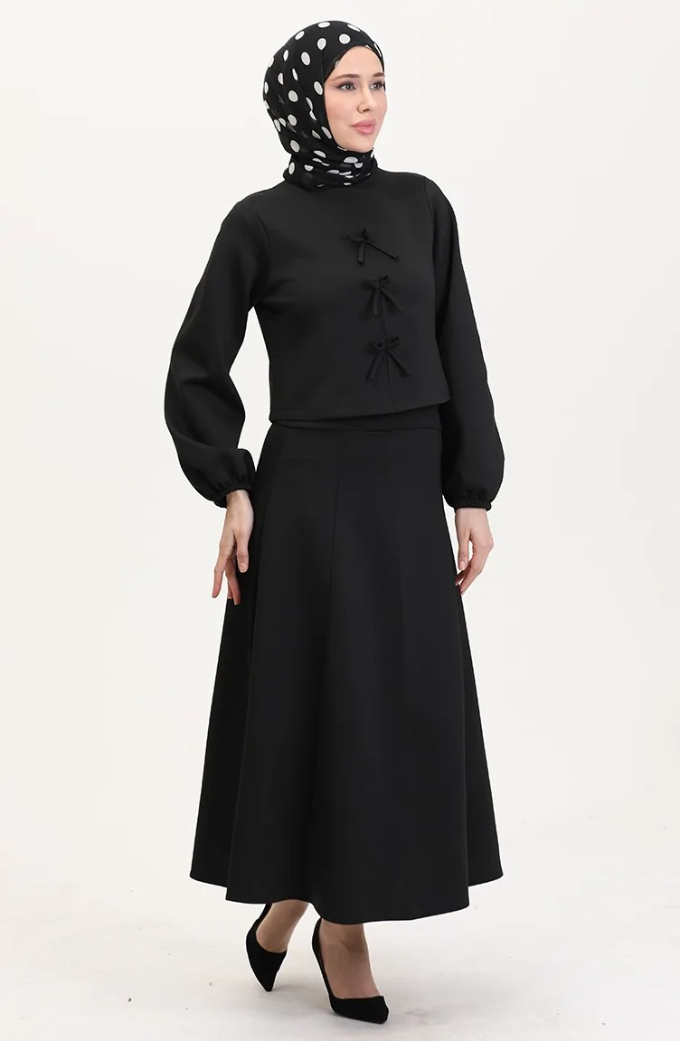 Scuba Fabric Blouse Rok Tweedelig Set 0021-04 Zwart 0021-04