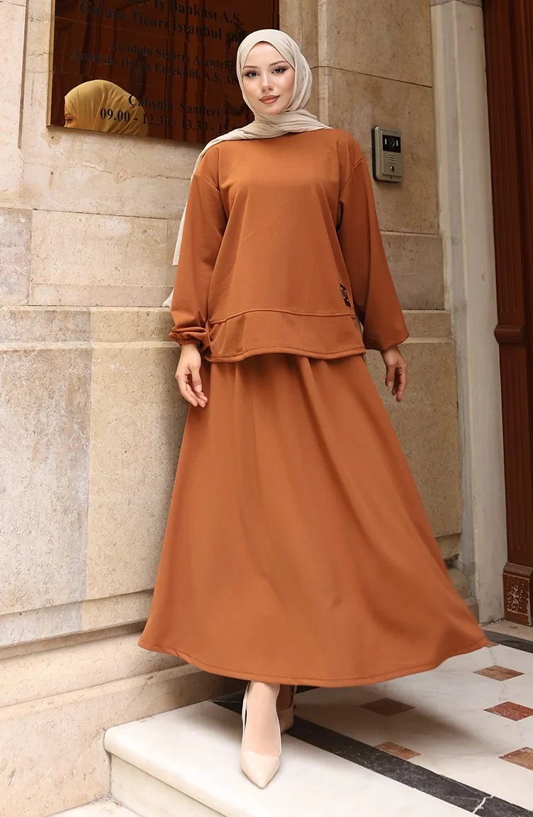 Scuba Fabric Hijab Tuniekrok Tweedelig Set 0221-03 Bruin 0221-03