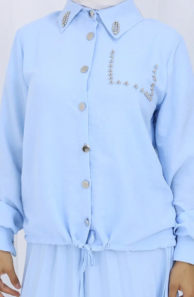 Stoned Buttoned Shirt Rok Tweedelig Pak 2113-01 Lichtblauw 2113-01