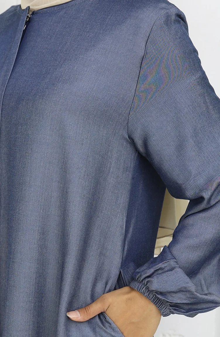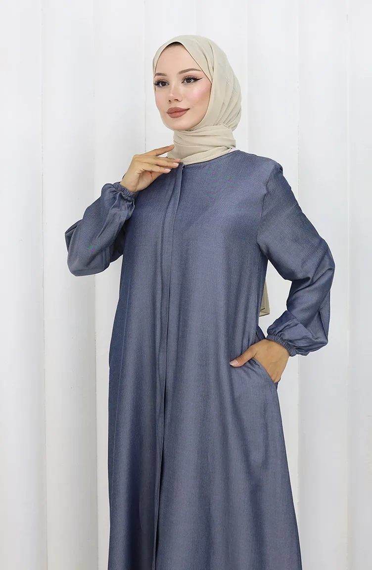 Abaya Met Ritssluiting Aan De Voorkant 2502-02 Marineblauw 2502-02