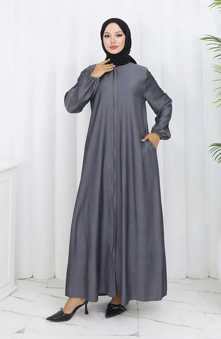 Abaya Met Ritssluiting Aan De Voorkant 2502-05 Antraciet 2502-05