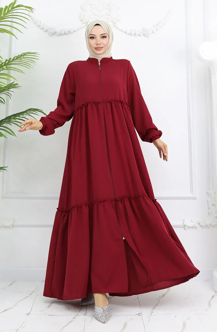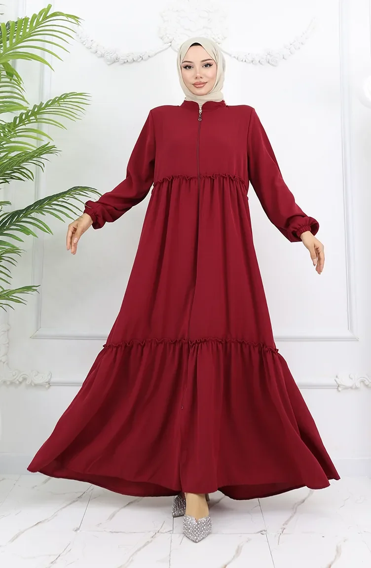 Abaya Met Ruches En Volledige Ritssluiting 0024-01 Bordeauxrood 0024-01