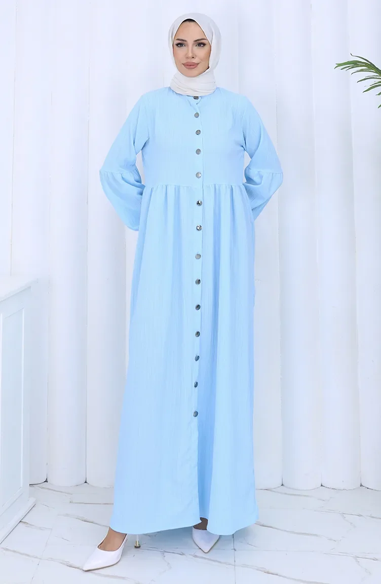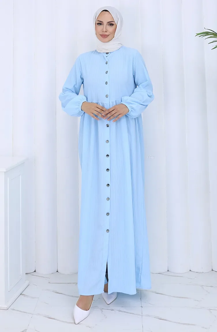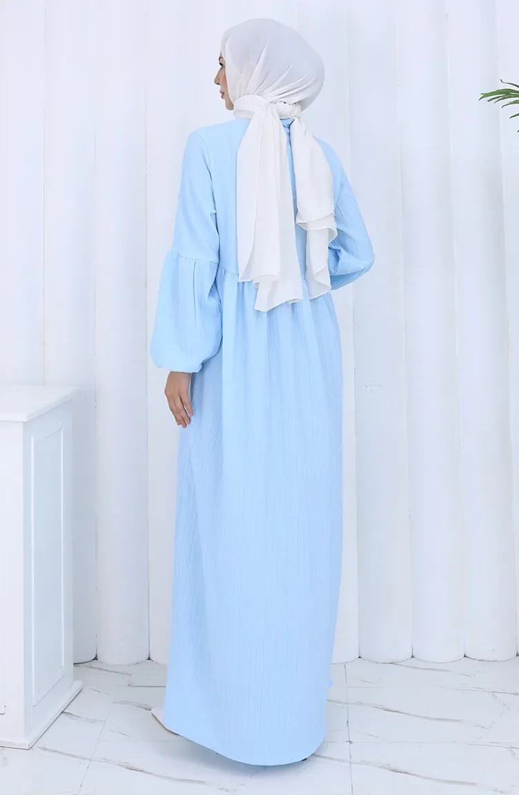 Geknoopte Abaya Met Elastische Mouwen 2124-02 Blauw 2124-02