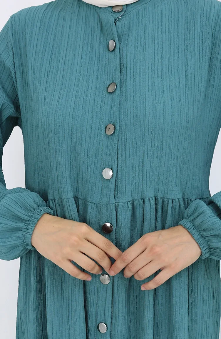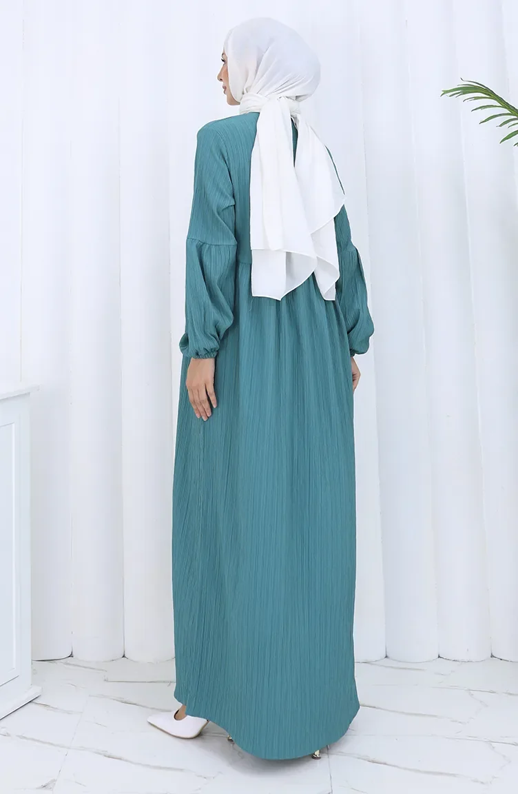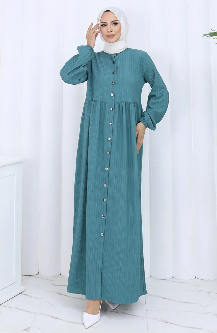 Geknoopte Abaya Met Elastische Mouwen 2124-04 Petrol 2124-04