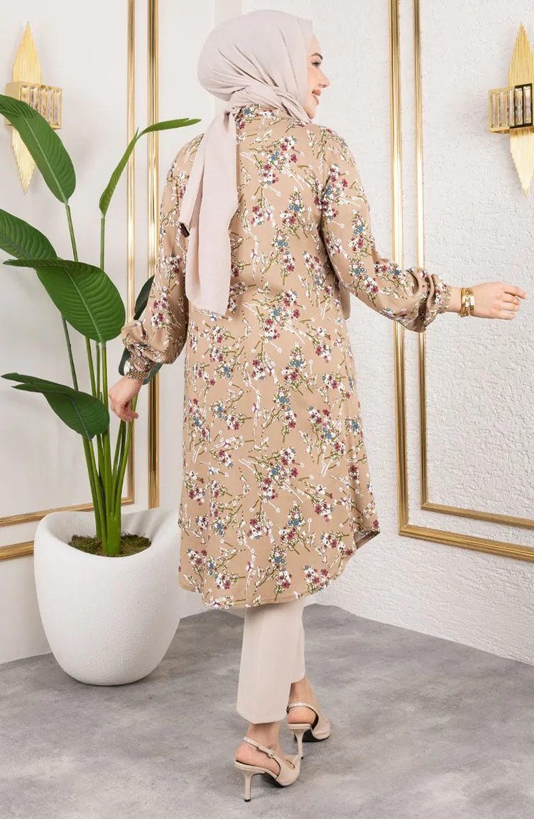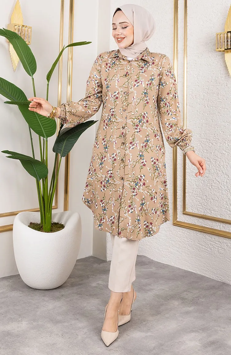 Asel Bloemen Viscose Tuniek 0174-06 Mink 0174-06