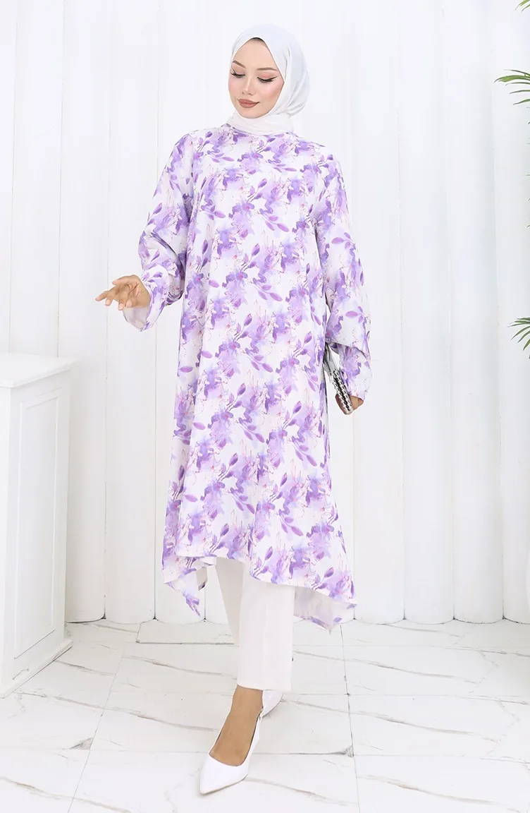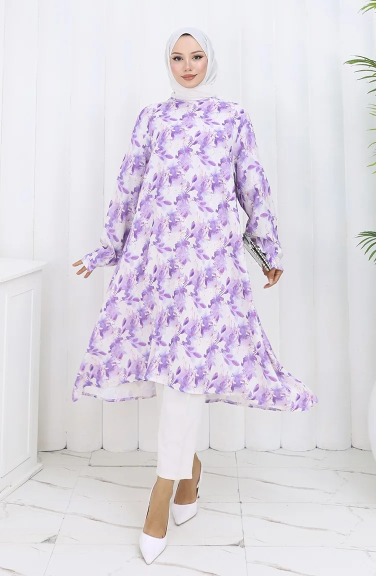 Gedessineerde Crêpe Tuniek 1014-02 Lila 1014-02