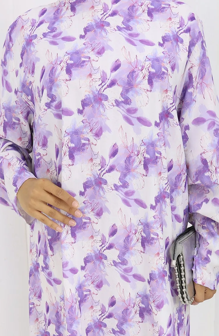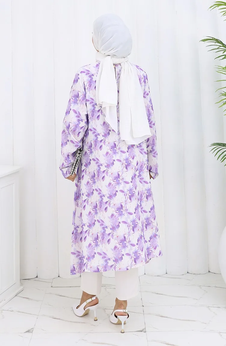 Lilac color is used. Designed with patterned fabric. The Zero collar is preferred for all types of clothing. Suitable for 4 seasons. Plus size option available.