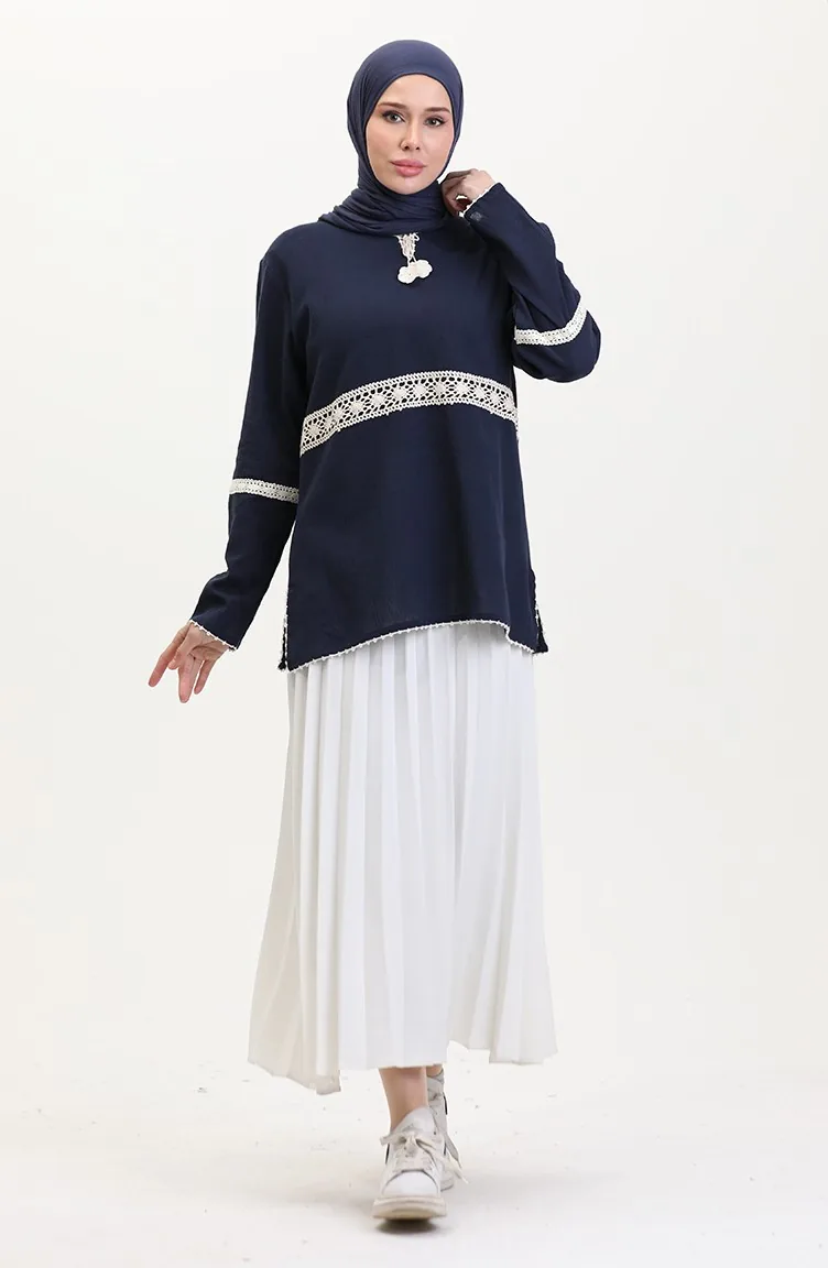 Shile Stoffen Kanten Tuniek 0317-02 Marineblauw 0317-02