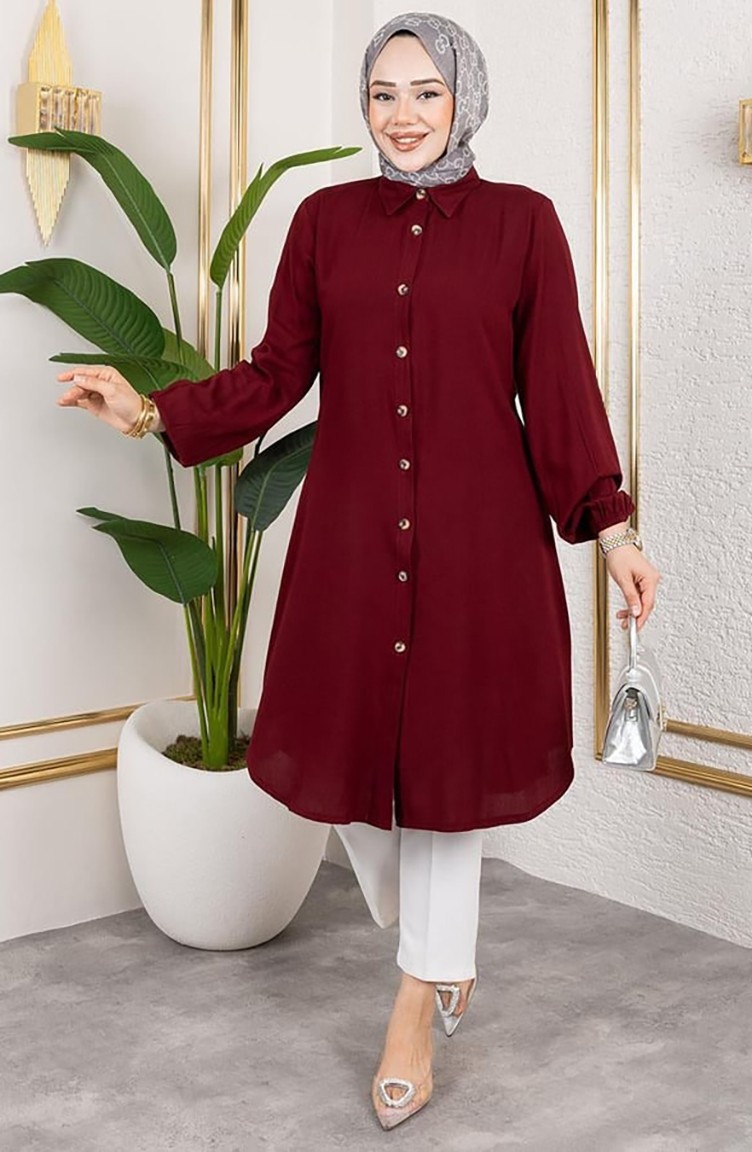 Viscose Tuniek Met Elastische Mouwen 0171-06 Bordeauxrood 0171-06