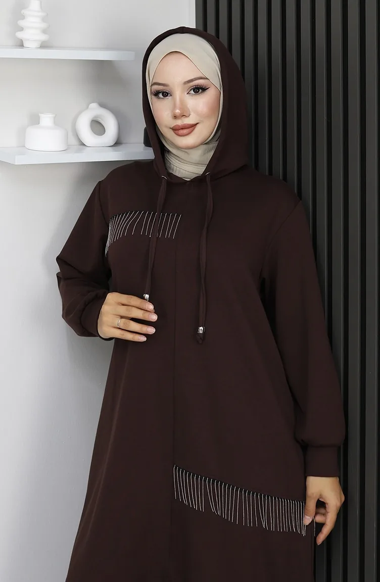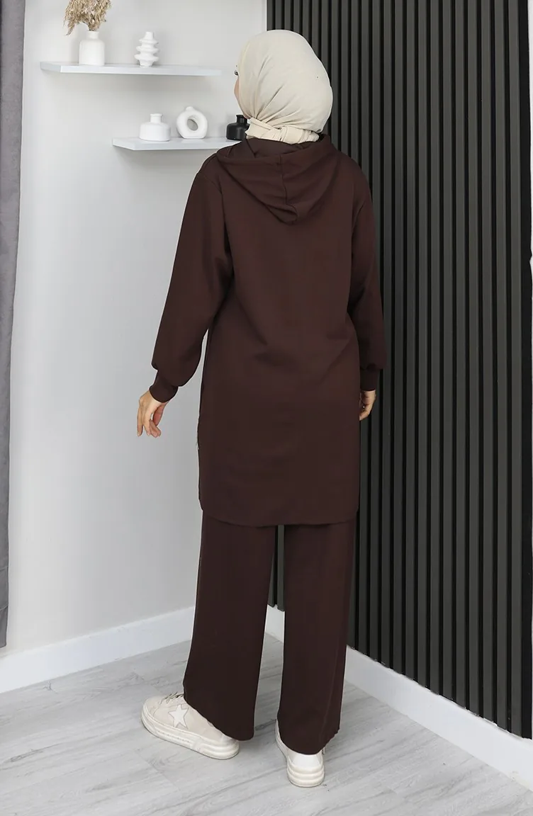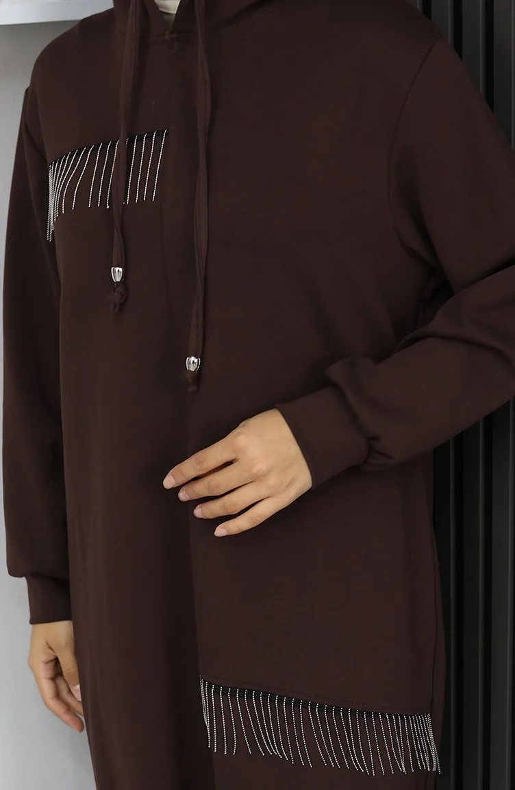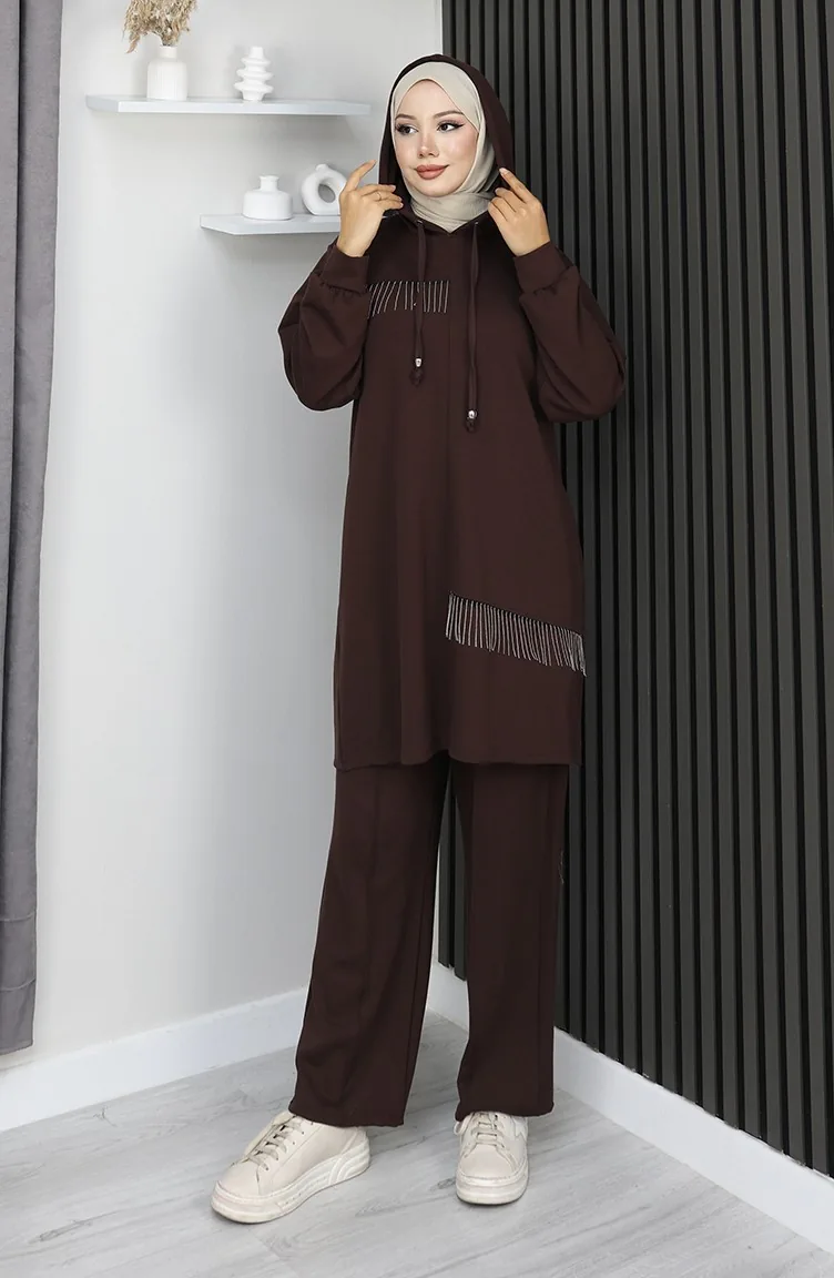 Oysho Stoffen Ketting Gedetailleerd Tweedelig Hijabpak 0212-05 Bruin 0212-05