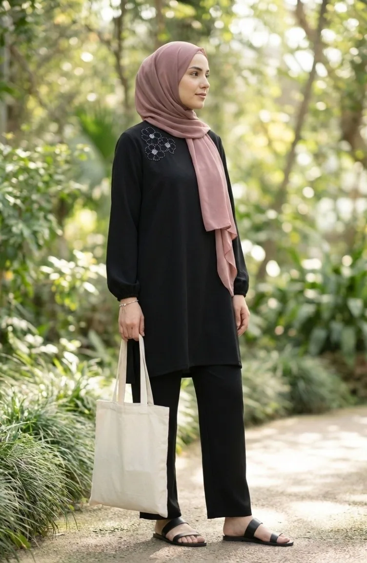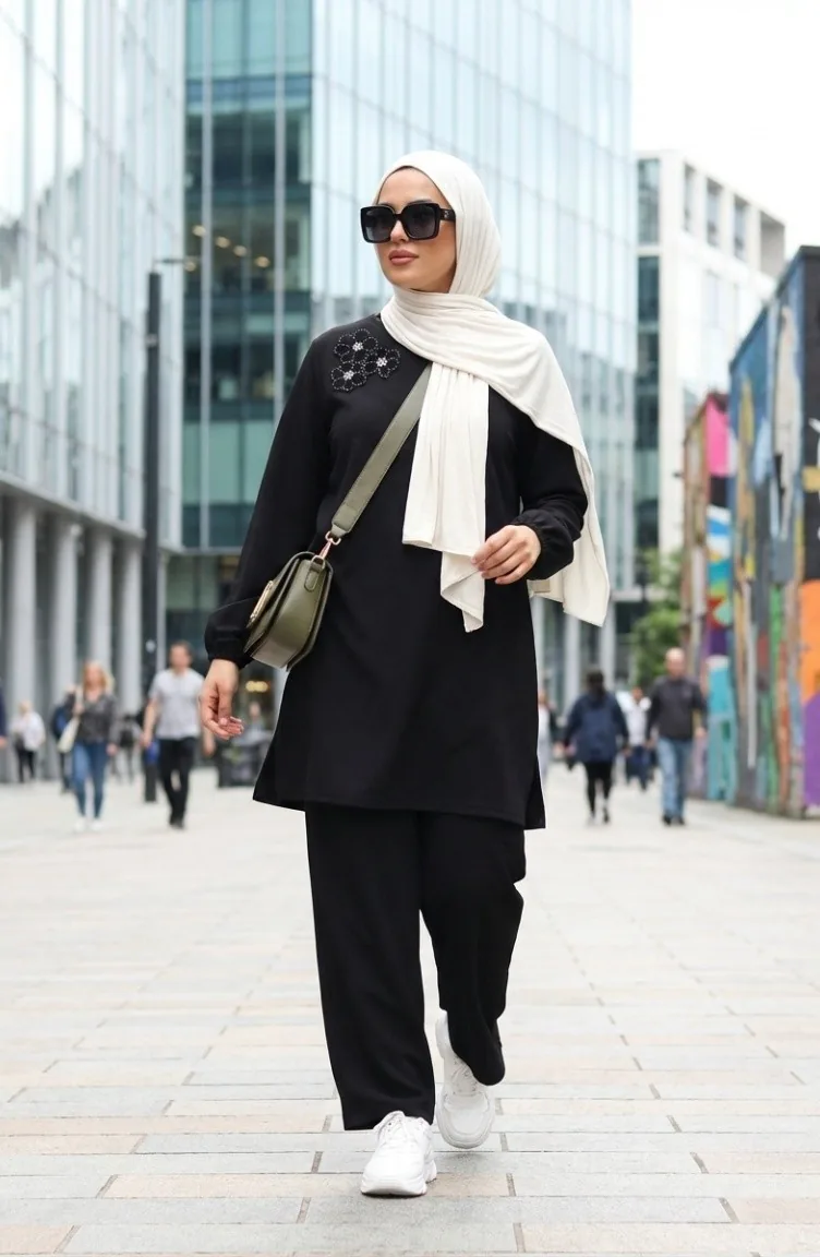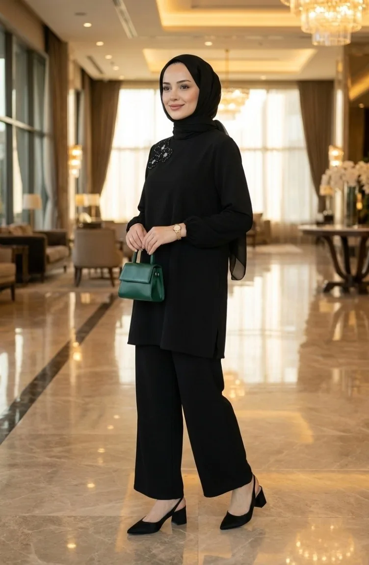 Tuniek En Broek Met Steenversiering Tweedelig Set 0230-01 Zwart 0230-01