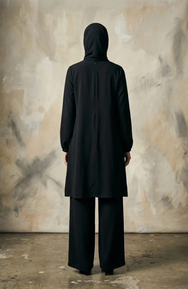 Black color is used. The cotton fabric has an absorbent texture. It has a plain appearance. Zipper is used for easy handling. It's made of elastic sleeves. The Zero collar is preferred for all types of clothing. Suitable for 4 seasons. Plus size option available.