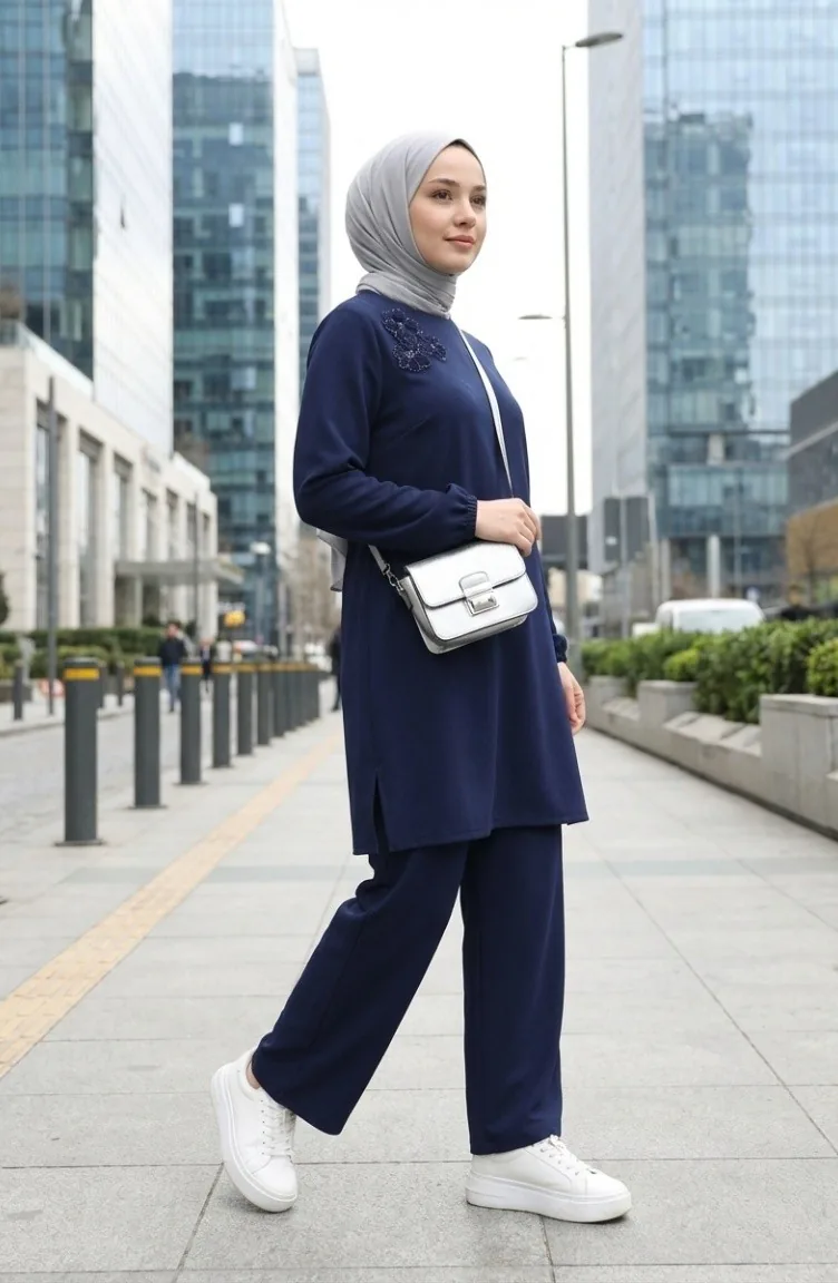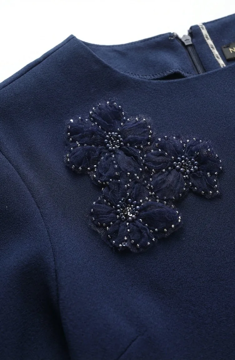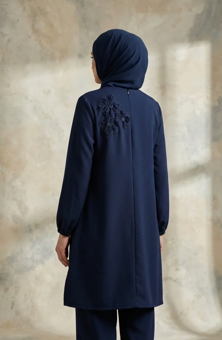Tuniek En Broek Met Steenversiering Tweedelig Set 0230-03 Marineblauw 0230-03