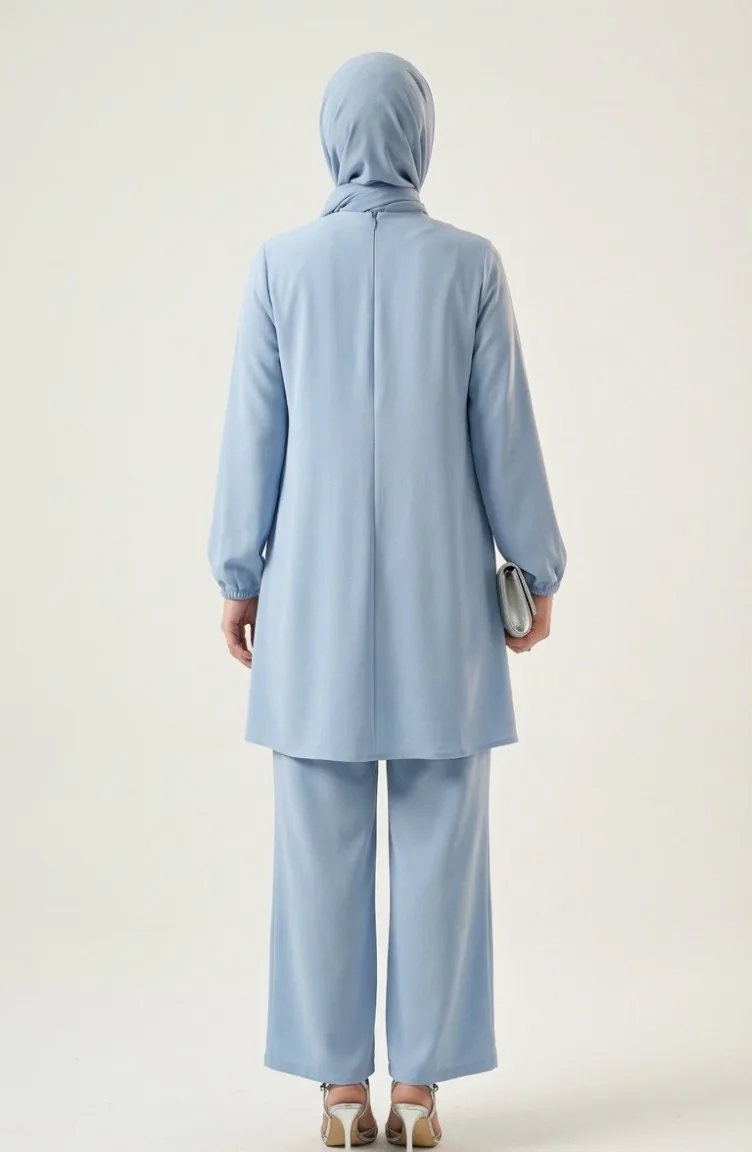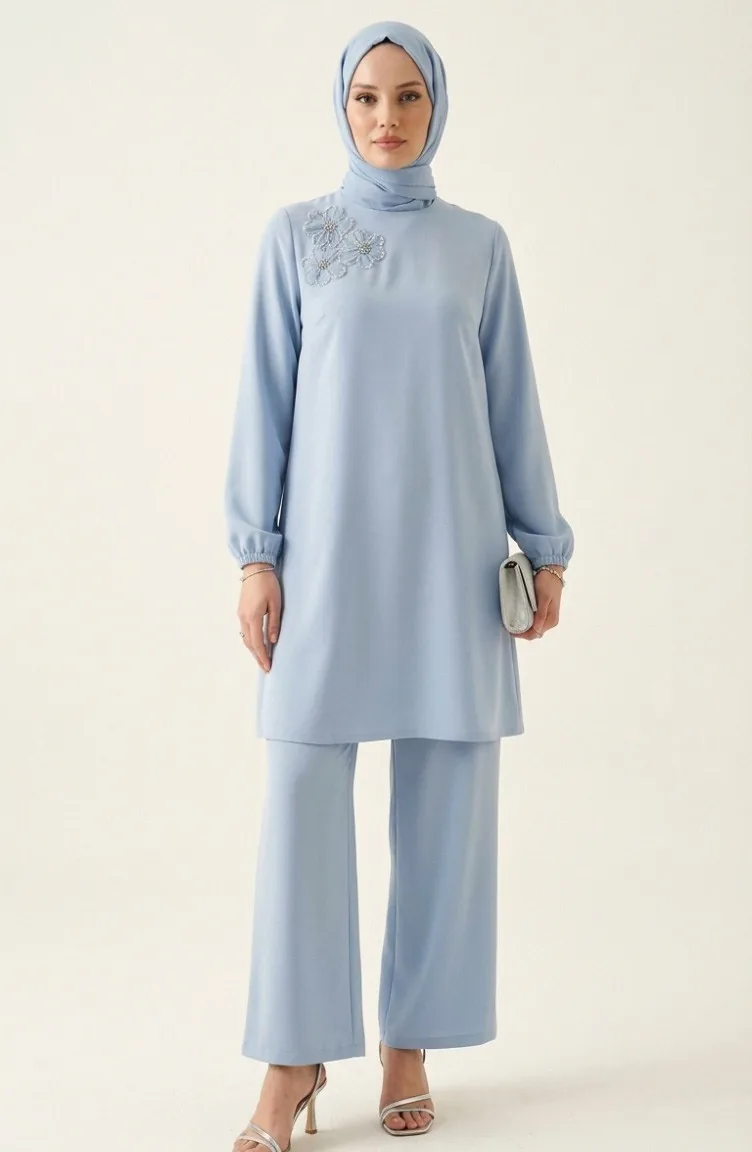 Tuniek En Broek Met Steenversiering Tweedelig Set 0230-06 Blauw 0230-06