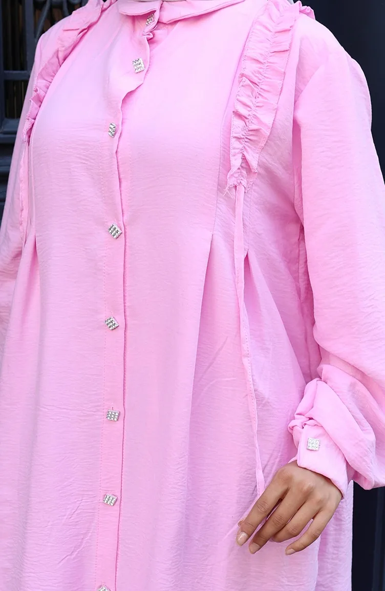 Tuniek Met Ruches Aan De Voorkant Pntolon Tweedelig Pak 2128-04 Roze 2128-04