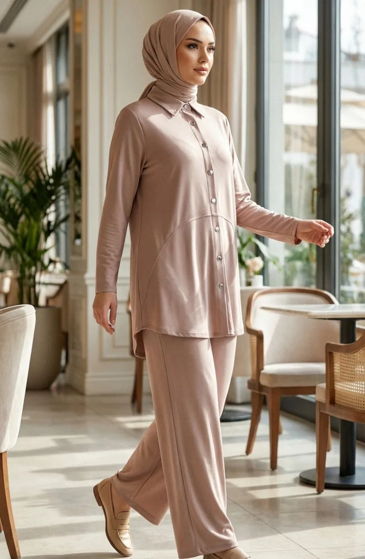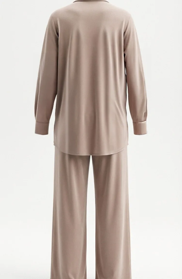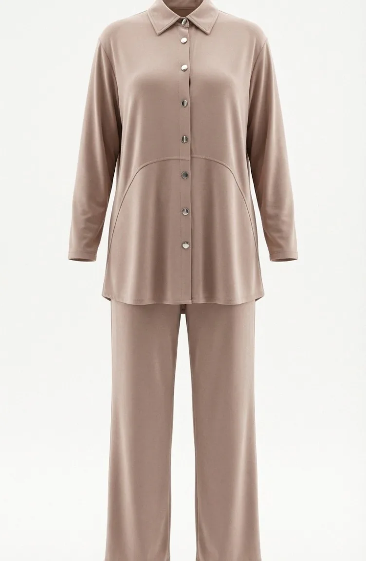Tweedelig Setje Met Overhemdkraag Tuniek En Broek Knoopsluiting 2210-03 Nerts 2210-03