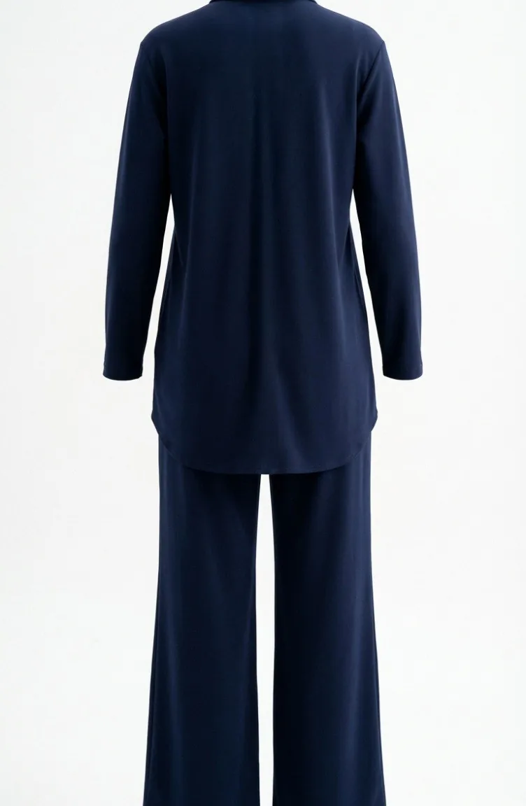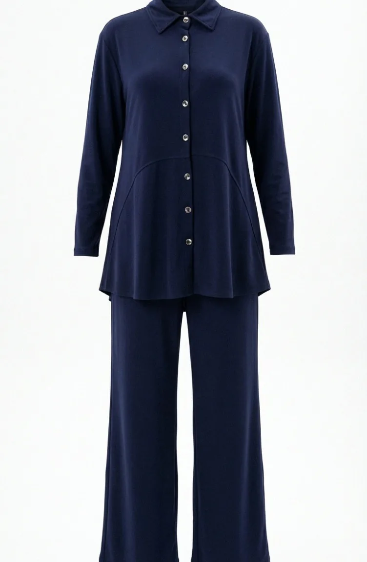 Tweedelig Setje Met Overhemdkraag Tuniek En Broek Model 2210-02 Marineblauw 2210-02