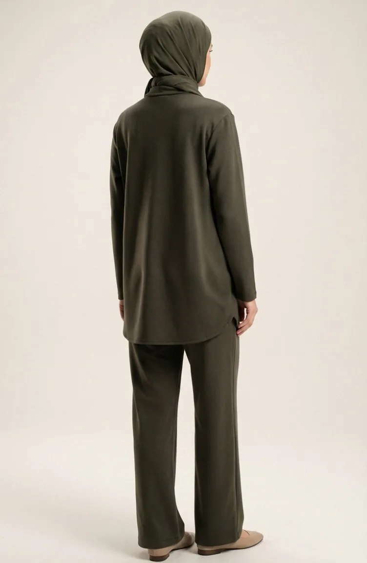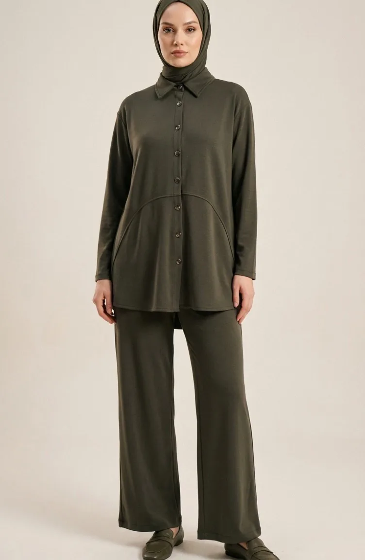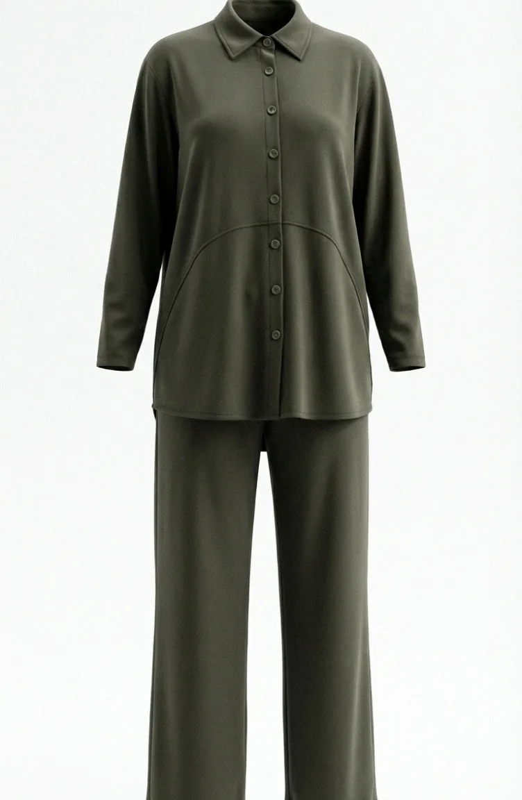 Tweedelig Setje Met Overhemdkraag Tuniek En Broek Model 2210-04 Khaki 2210-04