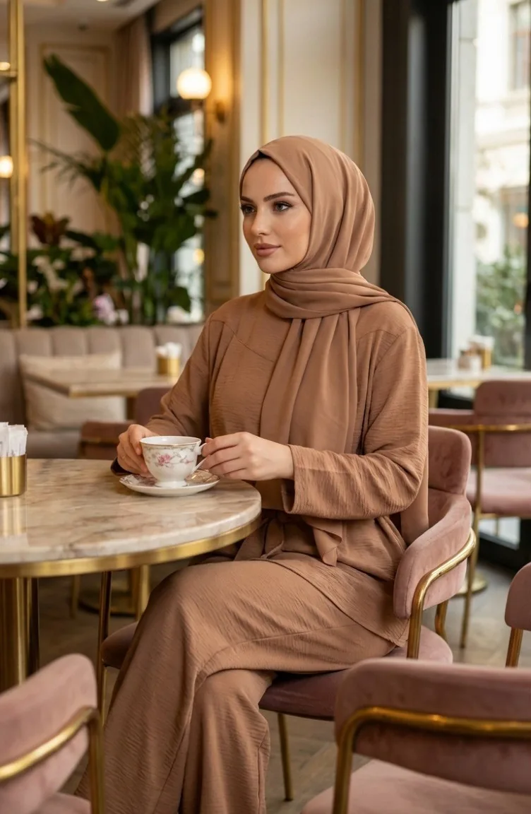 The camel color is used. Aerobin. It has a plain appearance. Buttons have been used to make it easy to use. The Zero collar is preferred for all types of clothing. Suitable for 4 seasons. Plus size option available.