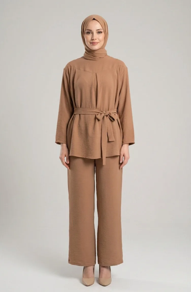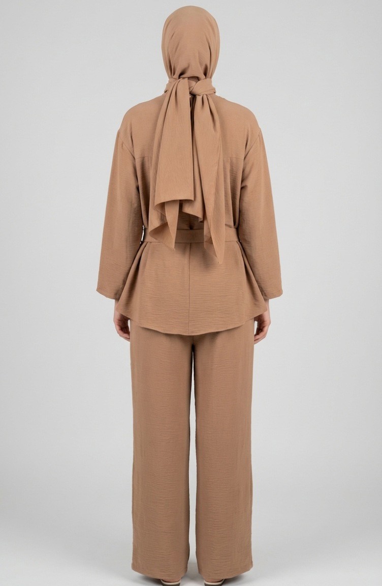 Tweedelige Set Bestaande Uit Een Tuniek En Een Broek Van Aerobin-stof Model 4141-08 Camel. 4141-08