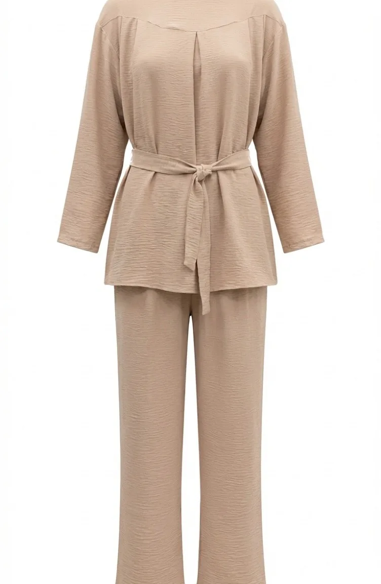 Tweedelige Set Van Tuniek En Broek Van Aerobin-stof 4141-02 Beige 4141-02