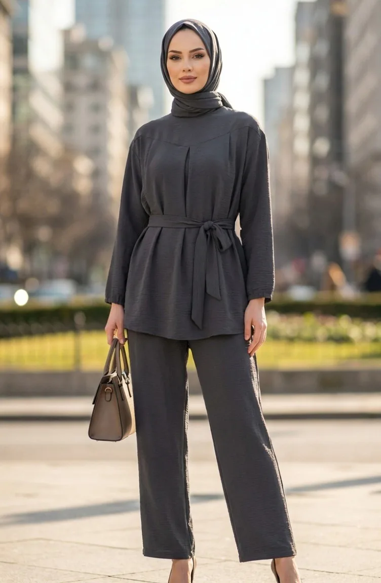 Tweedelige Set Van Tuniek En Broek Van Aerobin-stof 4141-07 Antraciet 4141-07