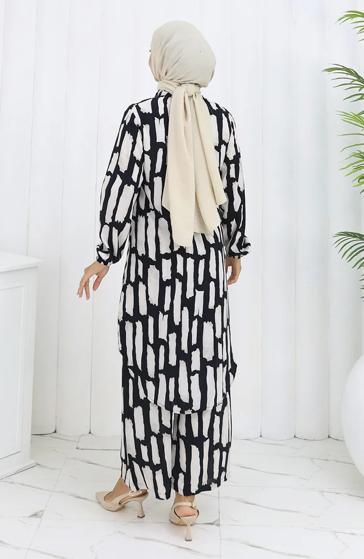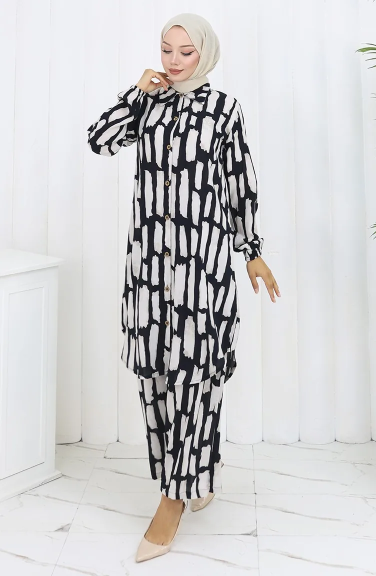 Viscose Stof Tuniek Broek Tweedelig Pak 0131-01 Zwart Wit 0131-01