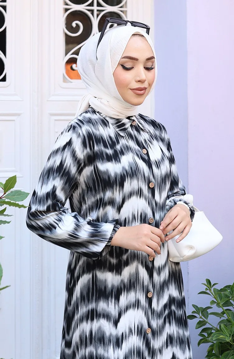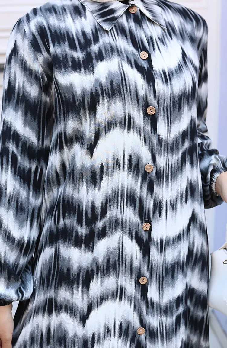 Black color is used. Viscose is a type of synthetic fabric and is convenient to use. Designed with patterned fabric. When the tunic combined with another product, you will get a nice suit. It's made of elastic sleeves. Suitable for 4 seasons. Plus size option available.