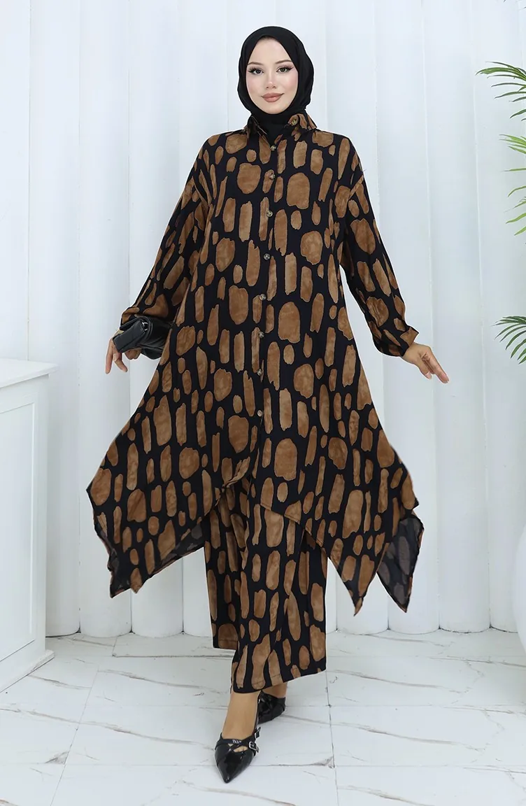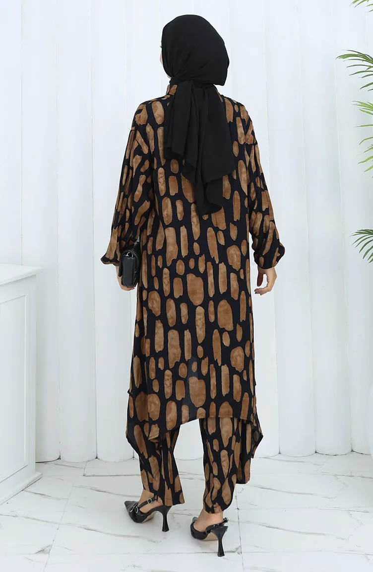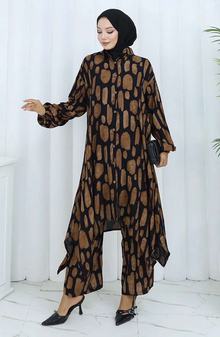 Viscose Stof Tuniek Broek Tweedelig Pak 2138-02 Zwart Bruin 2138-02