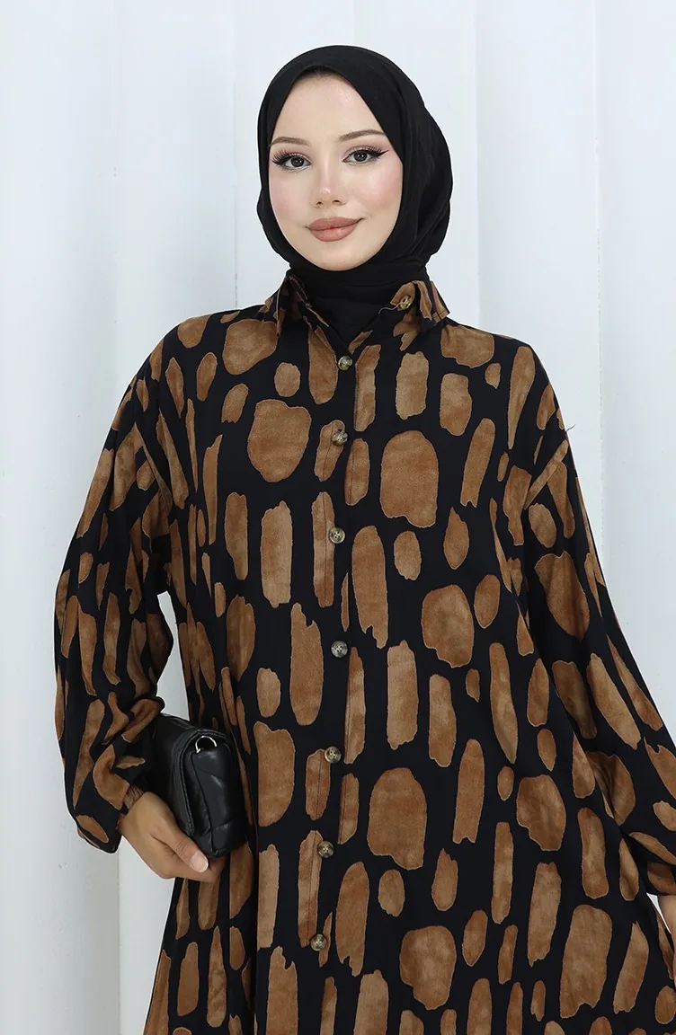 Black color is used. Viscose is a type of synthetic fabric and is convenient to use. Designed with patterned fabric. Buttons have been used to make it easy to use. It's made of elastic sleeves. Suitable for 4 seasons. Plus size option available.