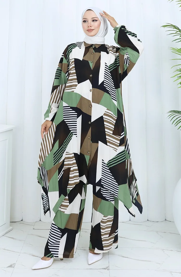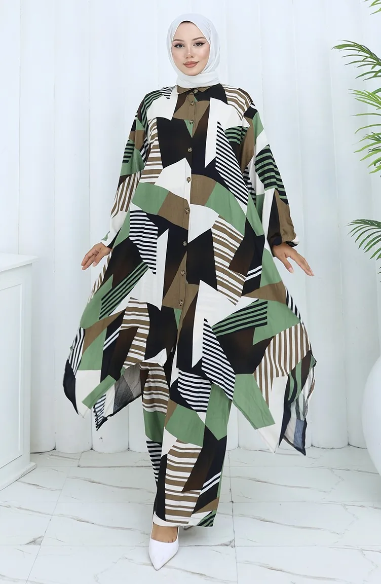 Viscose Stof Tuniek Broek Tweedelig Pak 2140-04 Khaki 2140-04