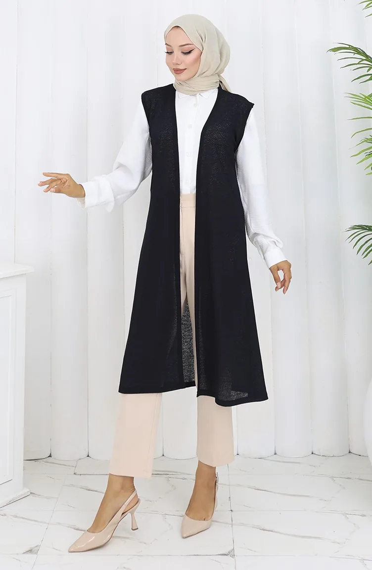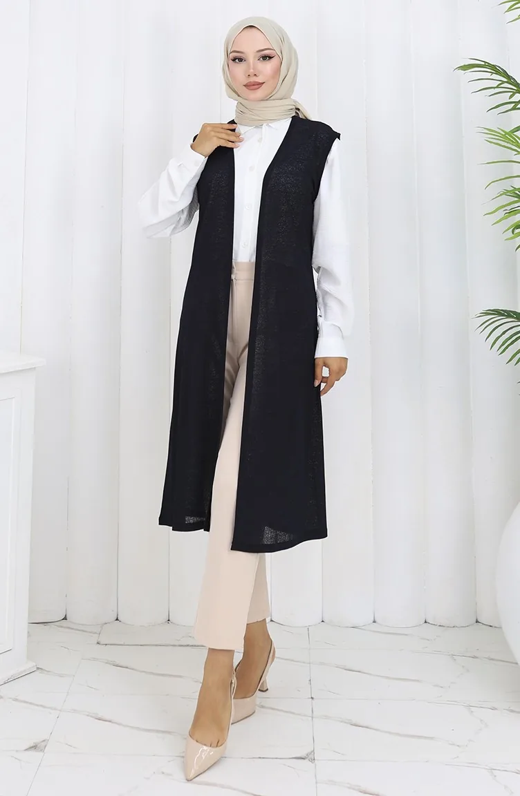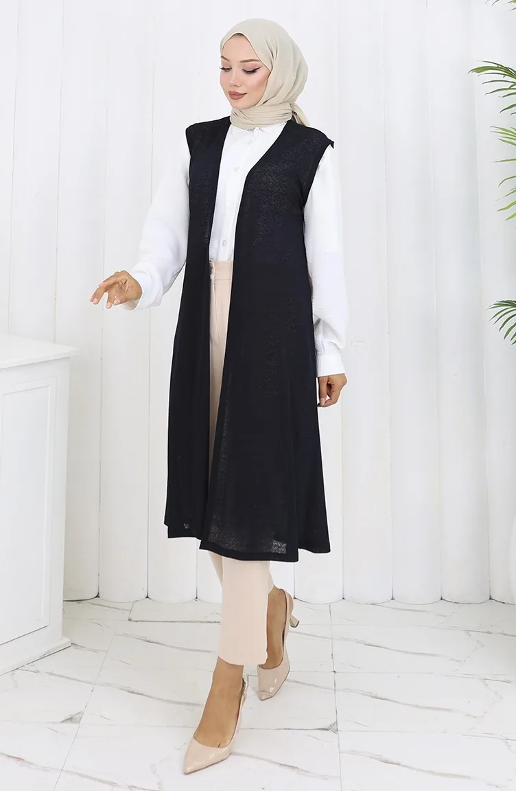 Eenvoudig Dun Basic Lang Vest Damesvest Plus Size Vest 8763-03 Donker Marineblauw 8763-03